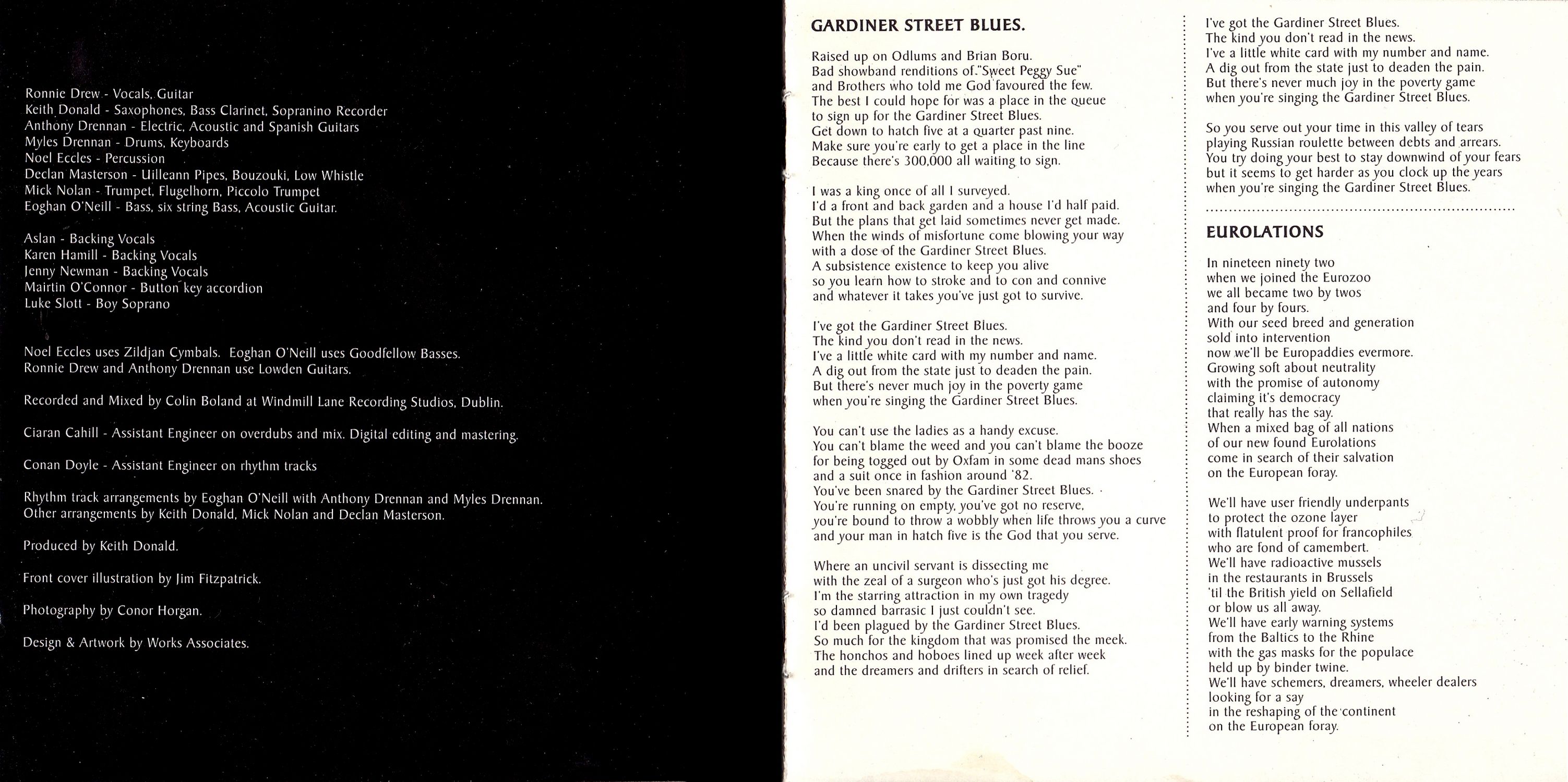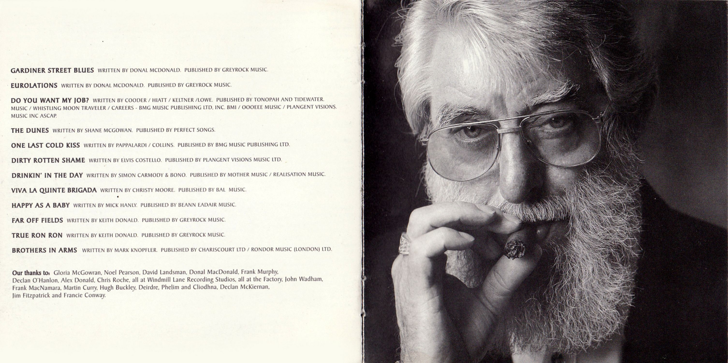 - Our thanks to: Gloria McGowran. Noel Pearson, David Landsman, Donal MacDonald, Frank Murphy, Declan O'Hanlon, Alex Donald, Chris Roche, all at Windmill Lane Recording Studios, all at the Factory, John Wadham, Frank MacNamara, Martin Curry, Hugh Buckley, Deirdre, Phelim and Cliodhna, Declan McKiernan, Jim Fitzpatrick and Francie Conway.