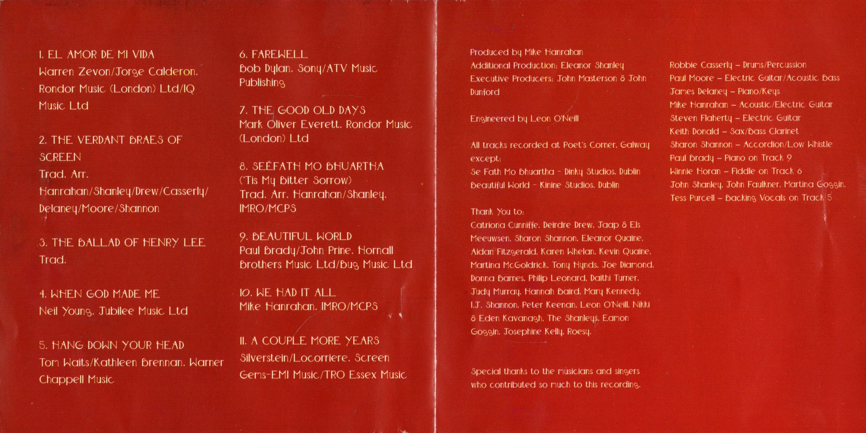 - All Tracks Recorded at Poet's Corner, Galway Except: