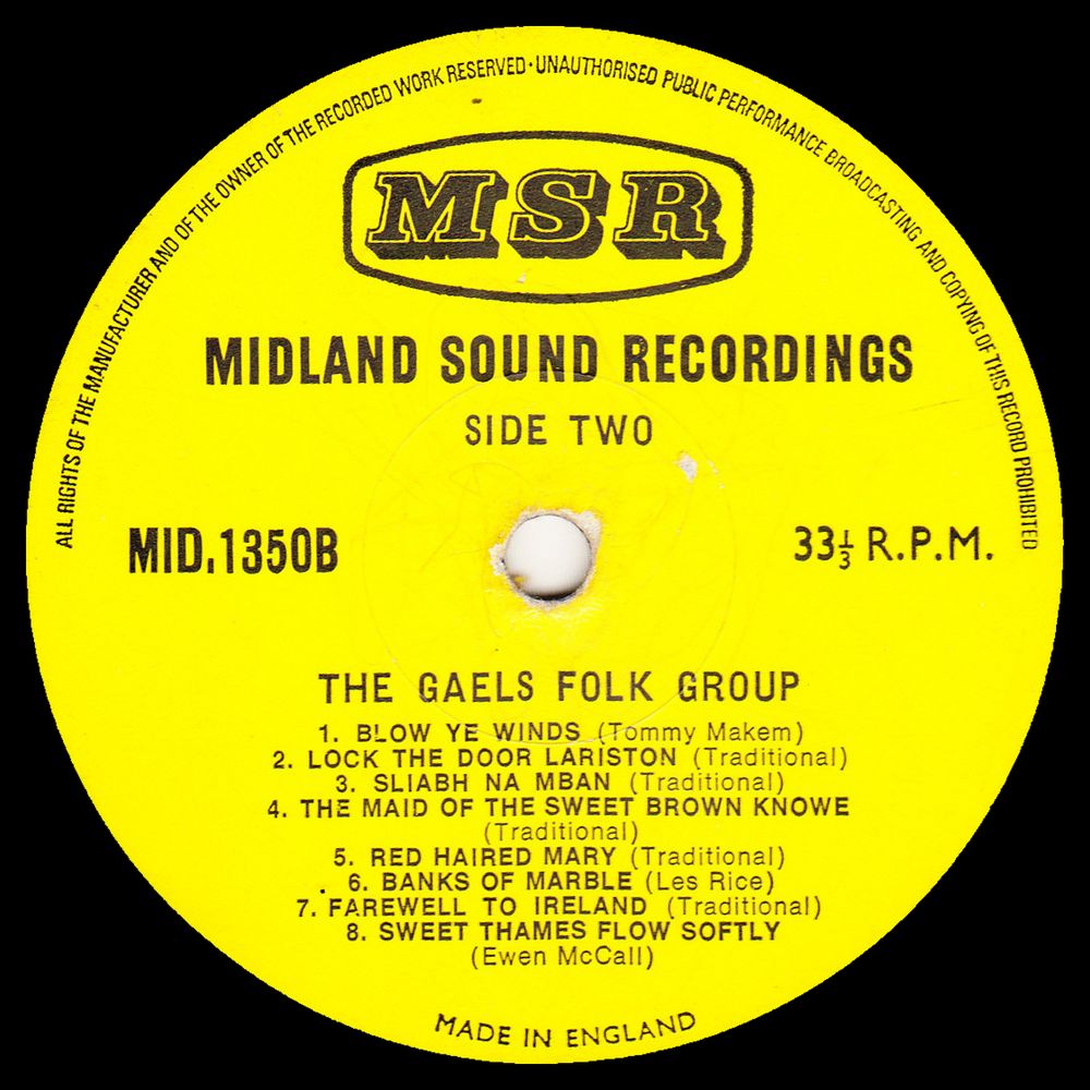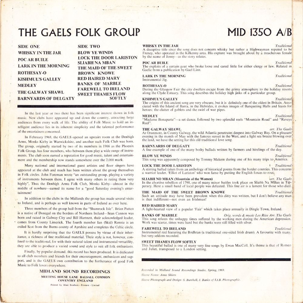 Finally, by popular demand, this record has been produced. It is dedicated to all club members and friends for their encouragement, enthusiasm and support, and is the GAELS own contribution to the furtherance of good Folk Music to Folk lovers everywhere.