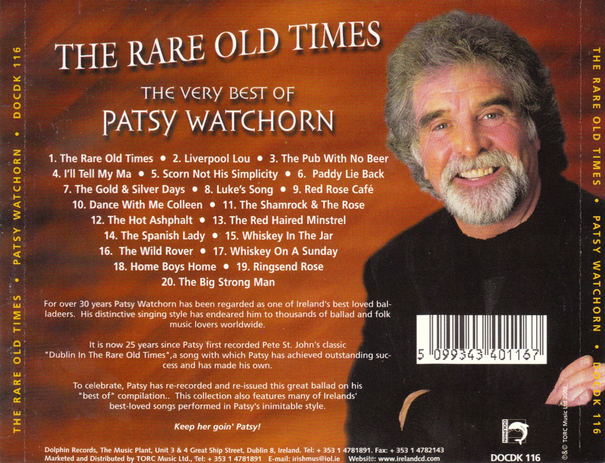 It is now 25 years since Patsy first recorded Pete St. John's classic "Dublin In The Rare Old Times", a song with which Patsy has achieved outstanding success and has made his own..