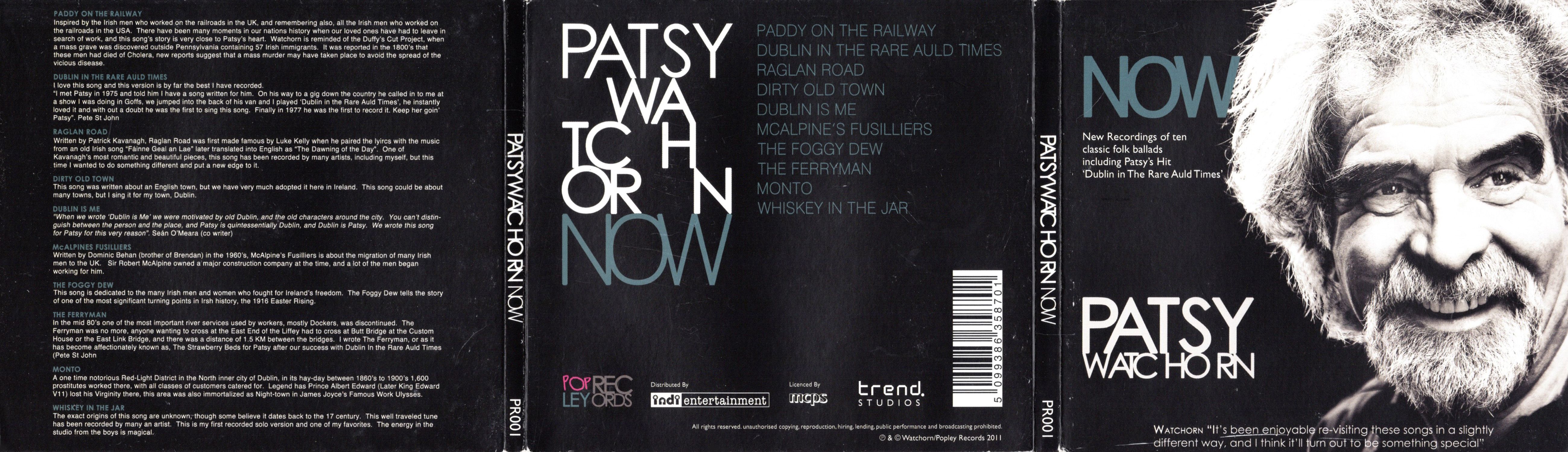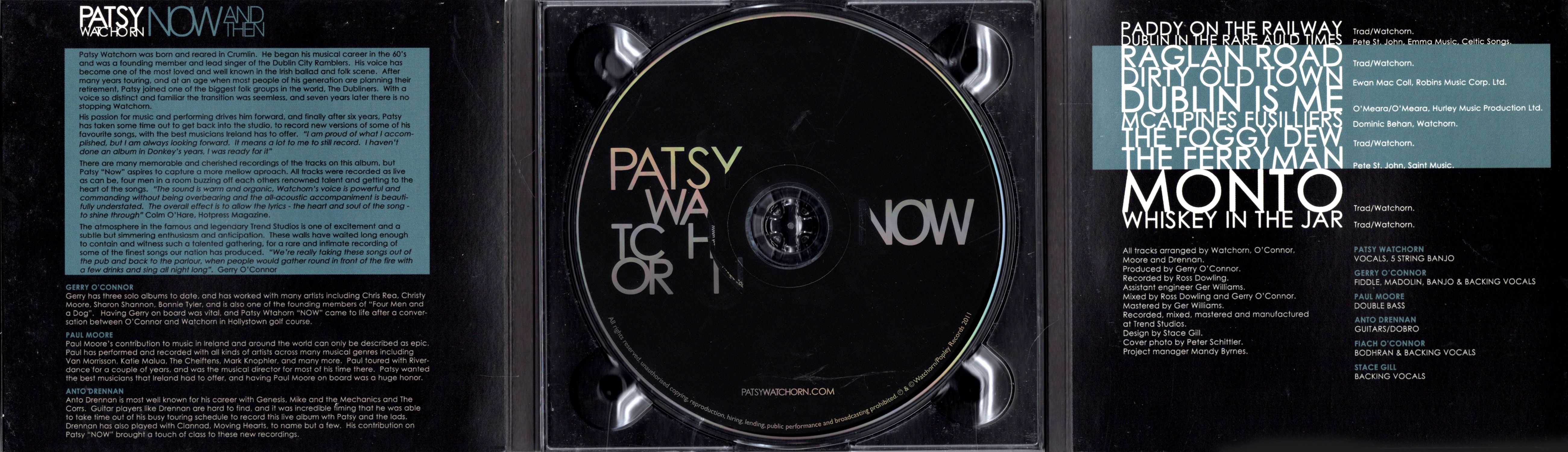 There are many memorable and cherished recordings of the tracks on this album, but Patsy "Now" aspires to capture a more mellow approach. All tracks were recorded as live as can be, four men in a room buzzing off each others renowned talent and getting to the heart of the songs. "The sound is warm and organic, Watchorn's voice is powerful and commanding without being overbearing and the all-acoustic accompaniment is beautifully understated. The overall effect is to allow the lyrics — the heart and soul of the song — to shine through" Colm O'Hare, Hotpress Magazine.