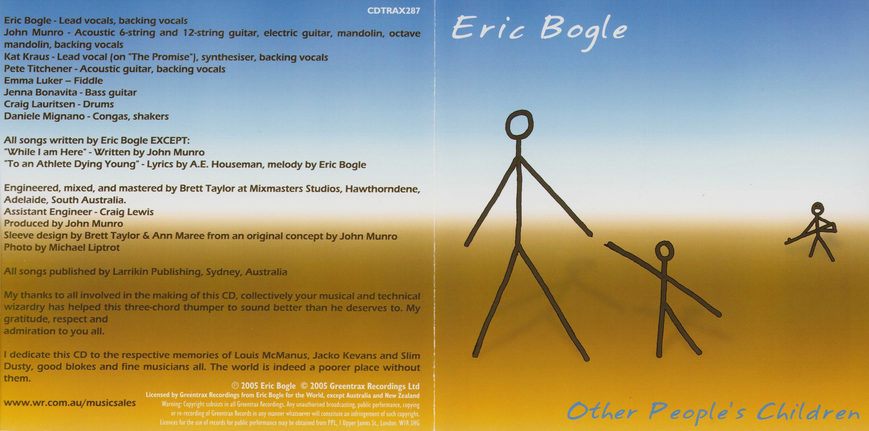 Other People's Children — Thanks mainly to the magic of television, for most of my adult life I've been able to view the killing and maiming of defenceless, helpless civilians, mostly women and children, in the myriad of nasty little wars that have plagued this planet since the last big one, i.e. WWII. This song is about images from some of these wars, from Korea to Iraq, that have remained with me over the years.
