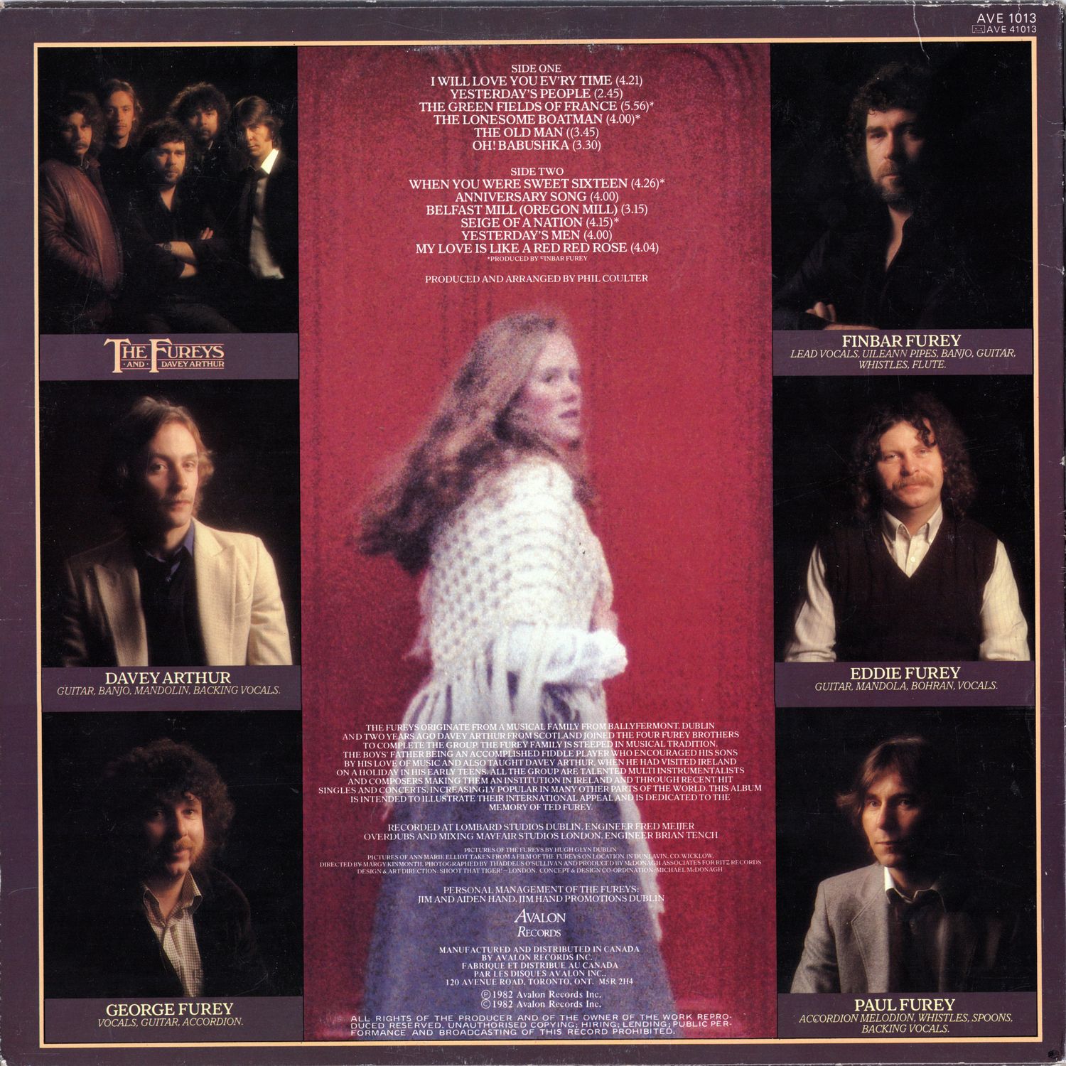 The Fureys originate from a musical family from Ballyermont, Dublin and two years ago Davey Arthur from Scotland joined the four Furey brothers to complete the group. The Furey family is steeped in musical tradition. The boys' father being an accomplished fiddle player who encouraged his sons by his love of music and also taught Davey Arthur who had visited Ireland on a holiday in his early teens. All the group are talented multi instrumentalists and composers making them an institution in Ireland and through recent hit singles and concerts, increasingly popular in many other parts of the world. This album is intended to illustrate their international appeal and dedicated to the memory of Ted Furey.