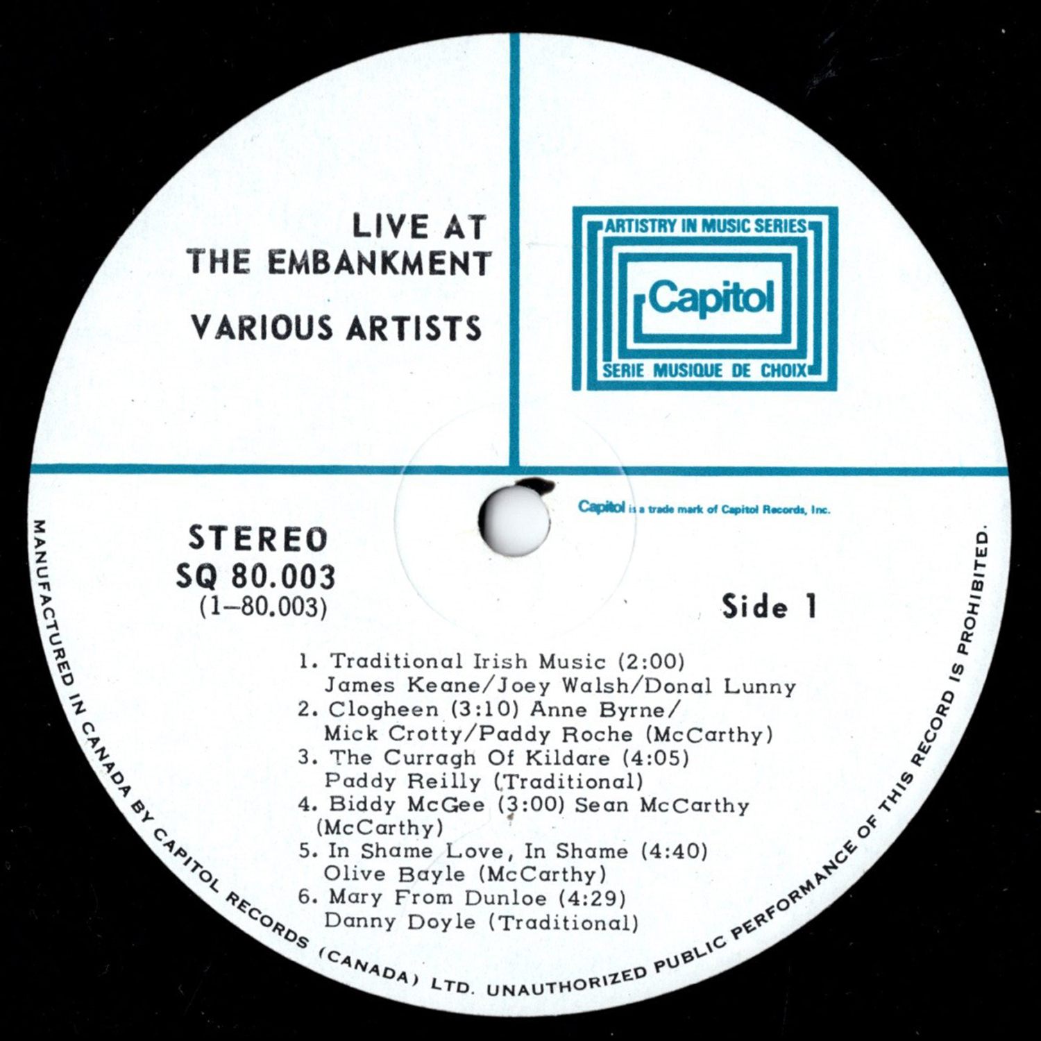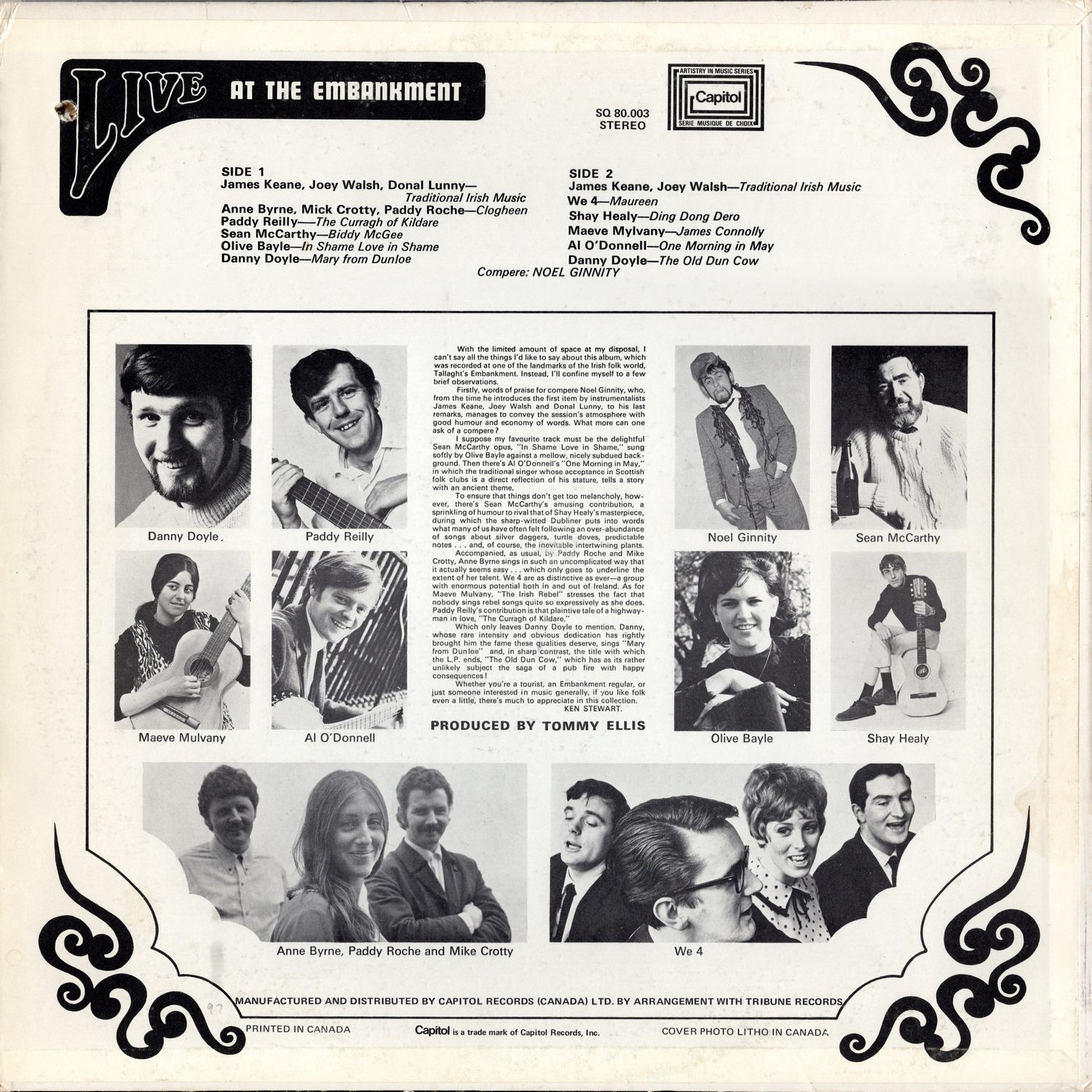 With the limited amount of space at my disposal, I can't say all the things I'd like to say about this album, which was recorded at one of the landmarks of the Irish folk world, Tallaght's Embankment. Instead, I'll confine myself to a few brief observations.