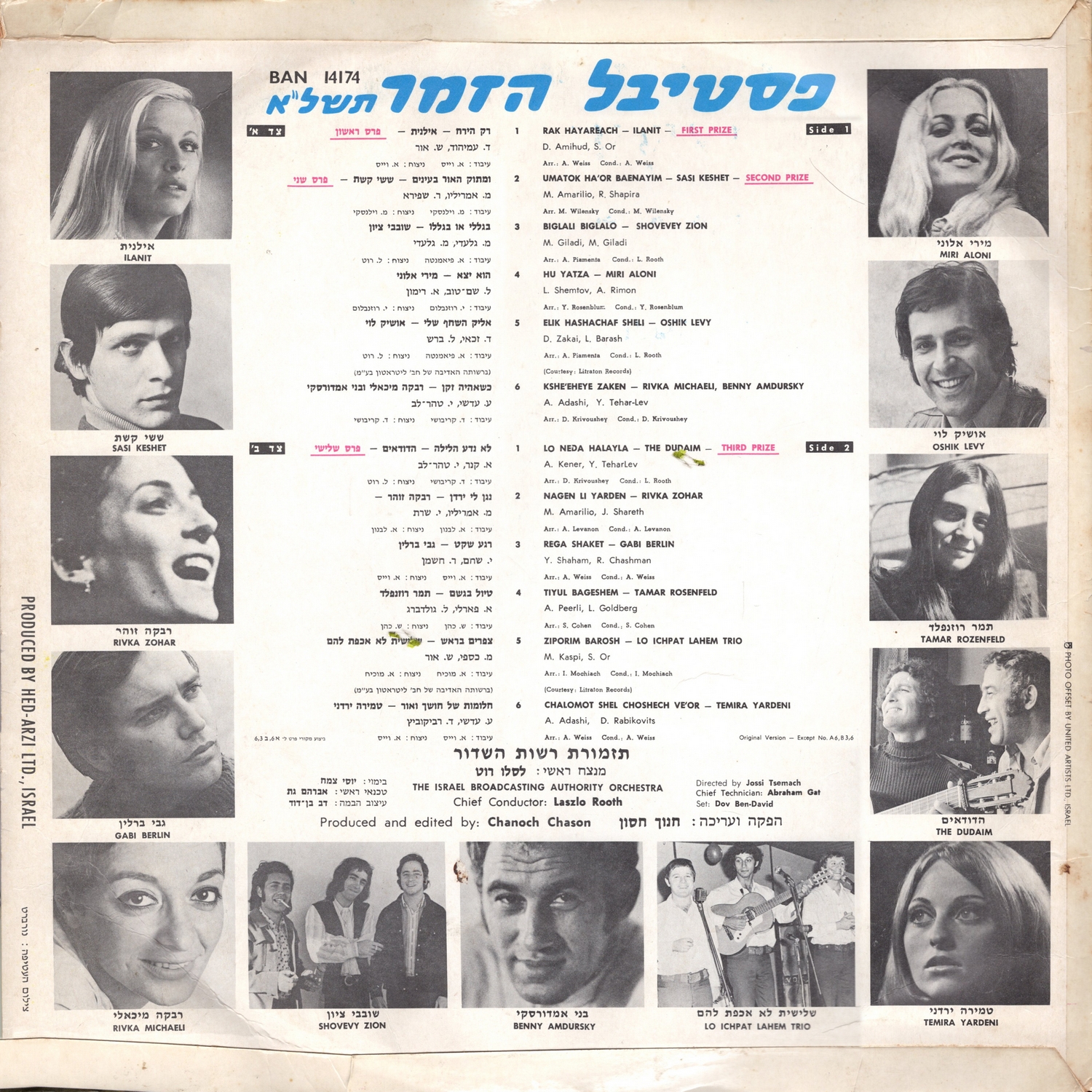 - Nagen Li Yarden (M. Amarilio, J. Shareth, Arr. A. Levanon) — Rivka Zohar