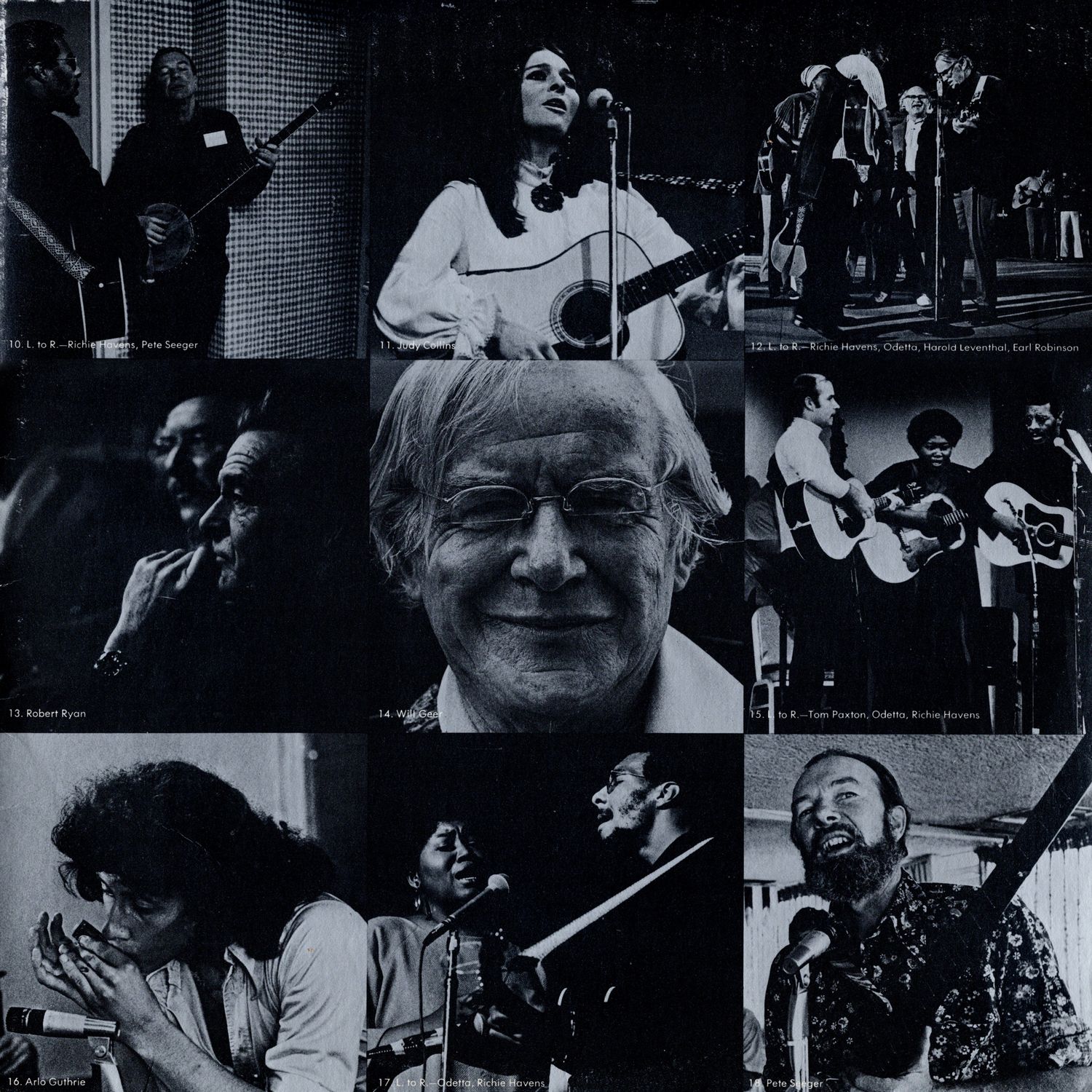 Except for the technical and stage crews, all the performing artists and the production staff donated their talents. Millard Lampell, who years back was a member of the "Almanac Singers" along with Woody, directed the concerts from a script he wove out of Woody's songs and writings. Harold Leventhal produced the New York and Hollywood Bowl concerts. Production Assistants were Terry Sullivan and Woody's wife, Marjorie Guthrie.