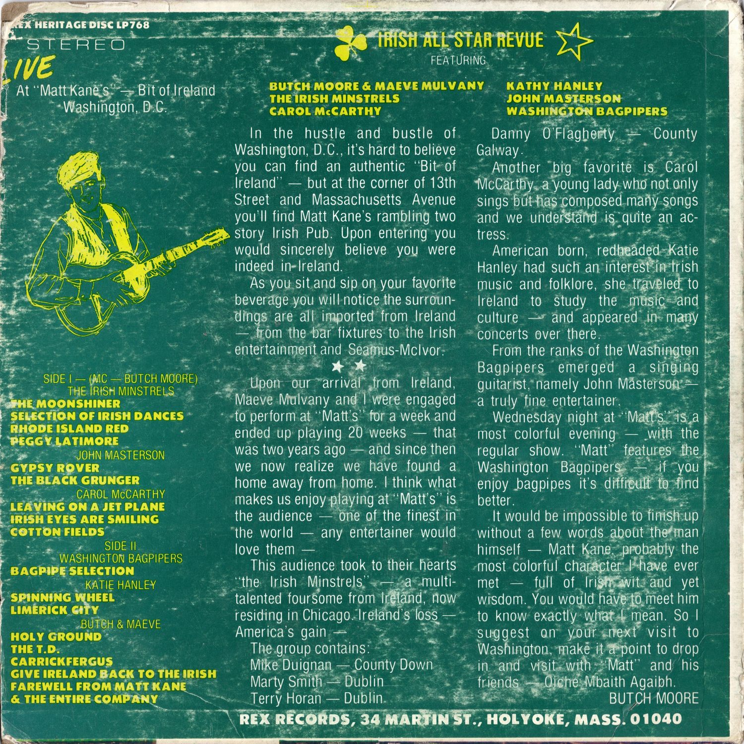 Upon our arrival from Ireland, Maeve Mulvany and I were engaged to perform at "Matt's" for a week and ended up playing 20 weeks — that was two years ago and since then we now realize we have found a home away from home. I think what makes us enjoy playing at"Matt's'' is the audience — one of the finest in 'the world — any entertainer would love them —