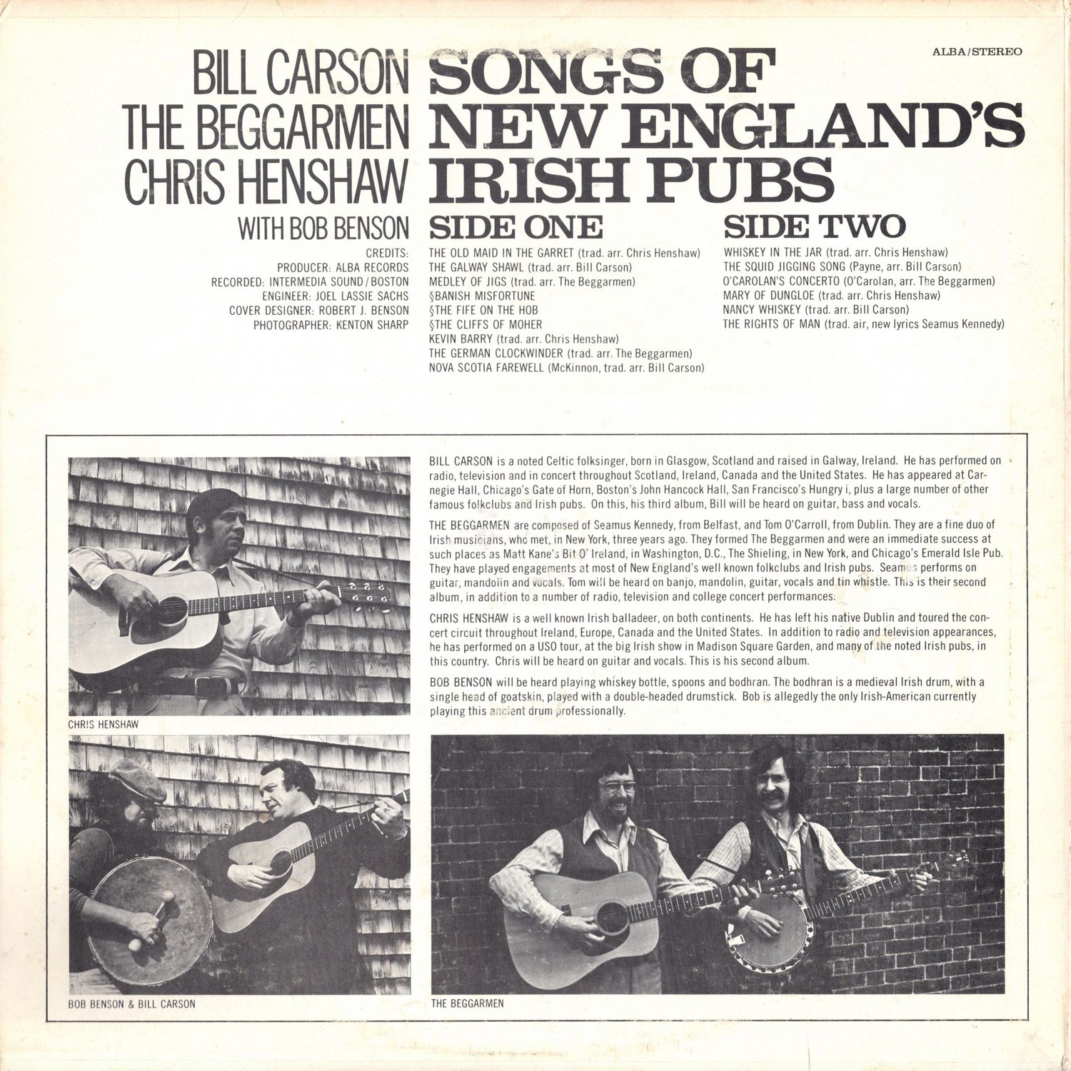 THE BEGGARMEN are composed of Seamus Kennedy, from Belfast, and Tom O'Carroll, from Dublin. They are a fine duo of Irish musicians, who met, in New York, three years ago. They formed The Beggarmen and were an immediate success at such places as Matt Kane's Bit O' Ireland, in Washington, D.C., The Shieling, in New York, and Chicago's Emerald Isle Pub. They have played engagements at most of New England's well known folkclubs and Irish pubs. Seamus performs on guitar, mandolin and vocals. Tom will be heard on banjo, mandolin, guitar, vocals and tin whistle. This is their second album, in addition to a number of radio, television and college concert performances.