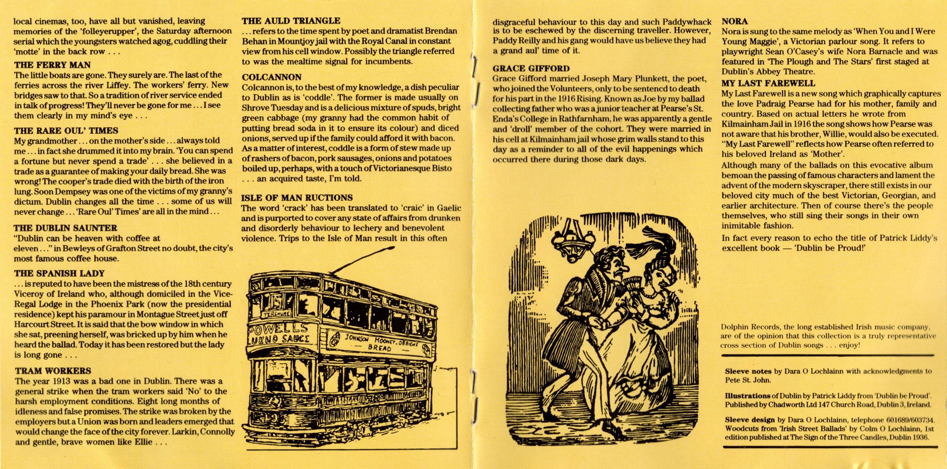 In fact every reason to echo the title of Patrick Liddy's excellent book — 'Dublin be Proud!' Dolphin Records, the long established Irish music company, are of the opinion that this collection is a truly representative cross section of Dublin songs … enjoy!