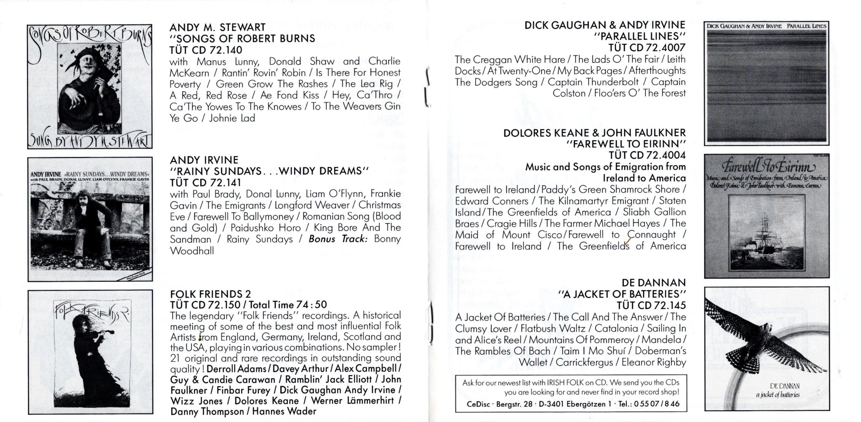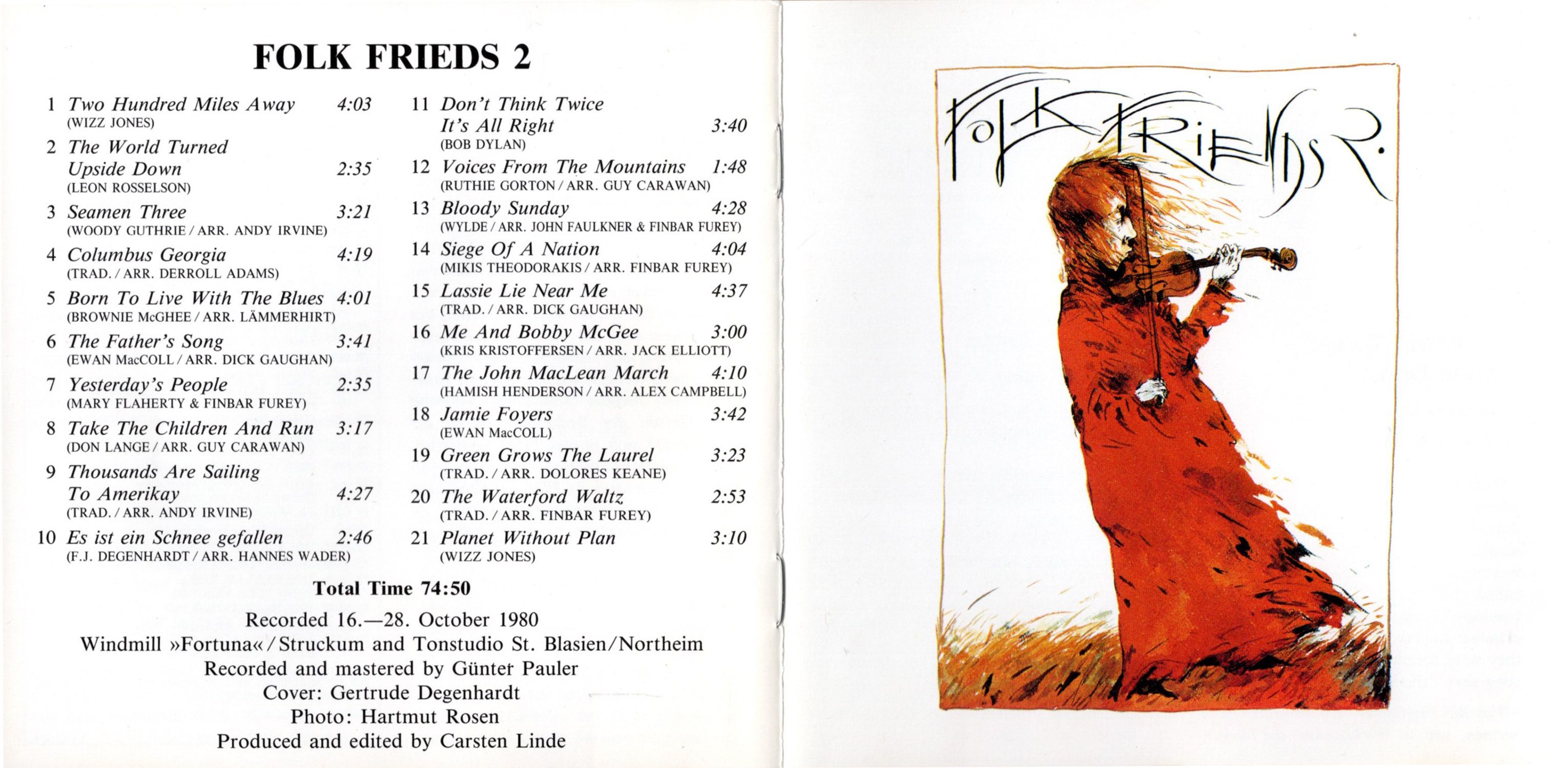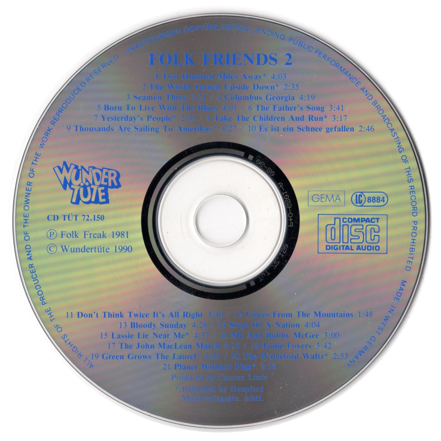 The legendary "Folk Friends" recordings. A historical meeting of some of the best and most influential Folk Artists from England, Germany, Ireland, Scotland and the USA. All playing solo and in various combinations together. No sampler! 21 original and unique recordings in outstanding sound quality!