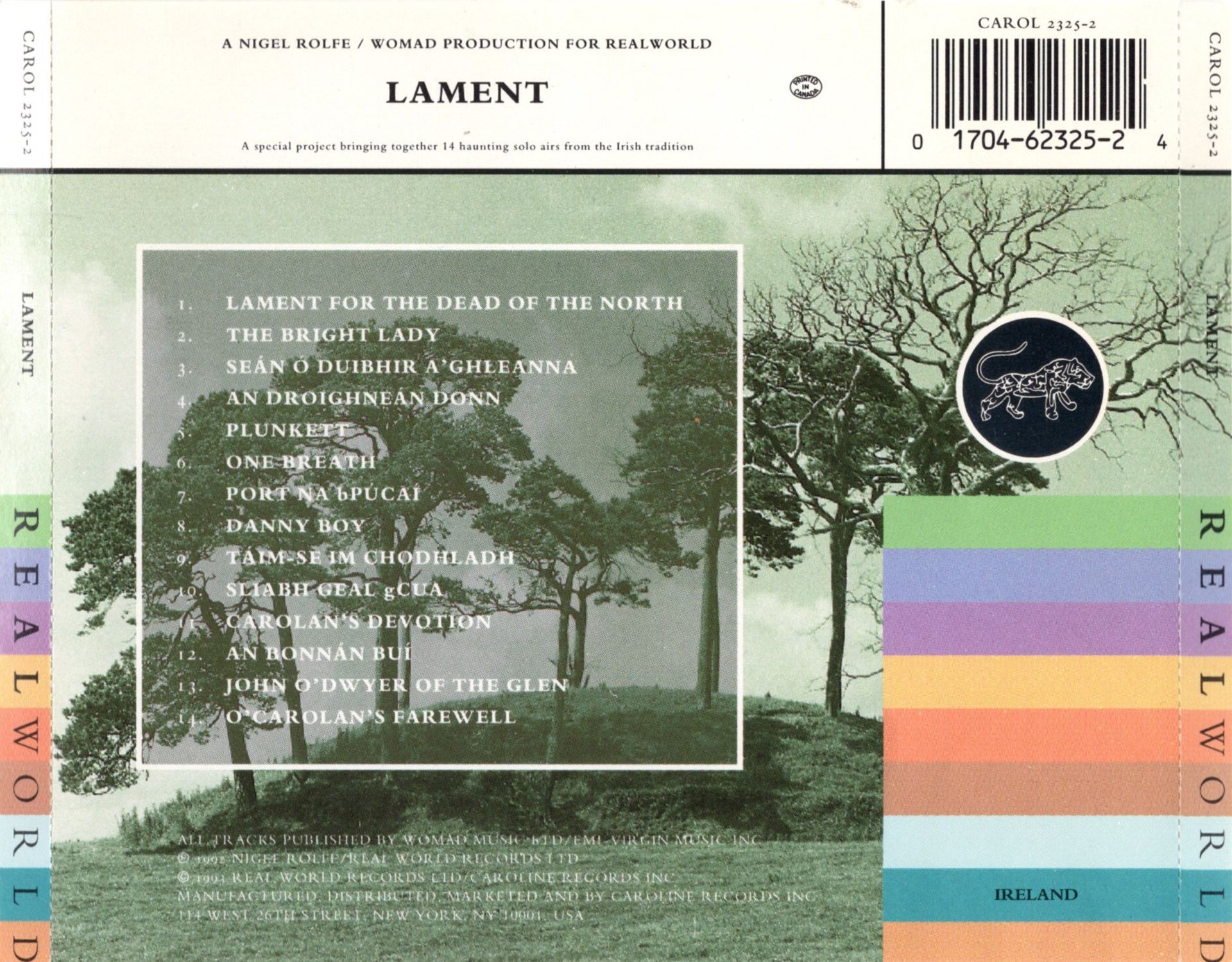 The Irish psyche is exposed and informed by music. Time is marked, a nerve is touched, events are noted, spiritual moments recorded, put by as sound in air. It is important to make a tribute, a marker to the sad and unnecessary loss of life through violence in the troubles in these islands. This gathering of laments is a monument to this sadness, to innocence, to hope. Whilst listening there is reflection of a landscape, of a human condition and of profound grief. The situation of innocent death served by others for political gain happens nearly daily in Ireland.
