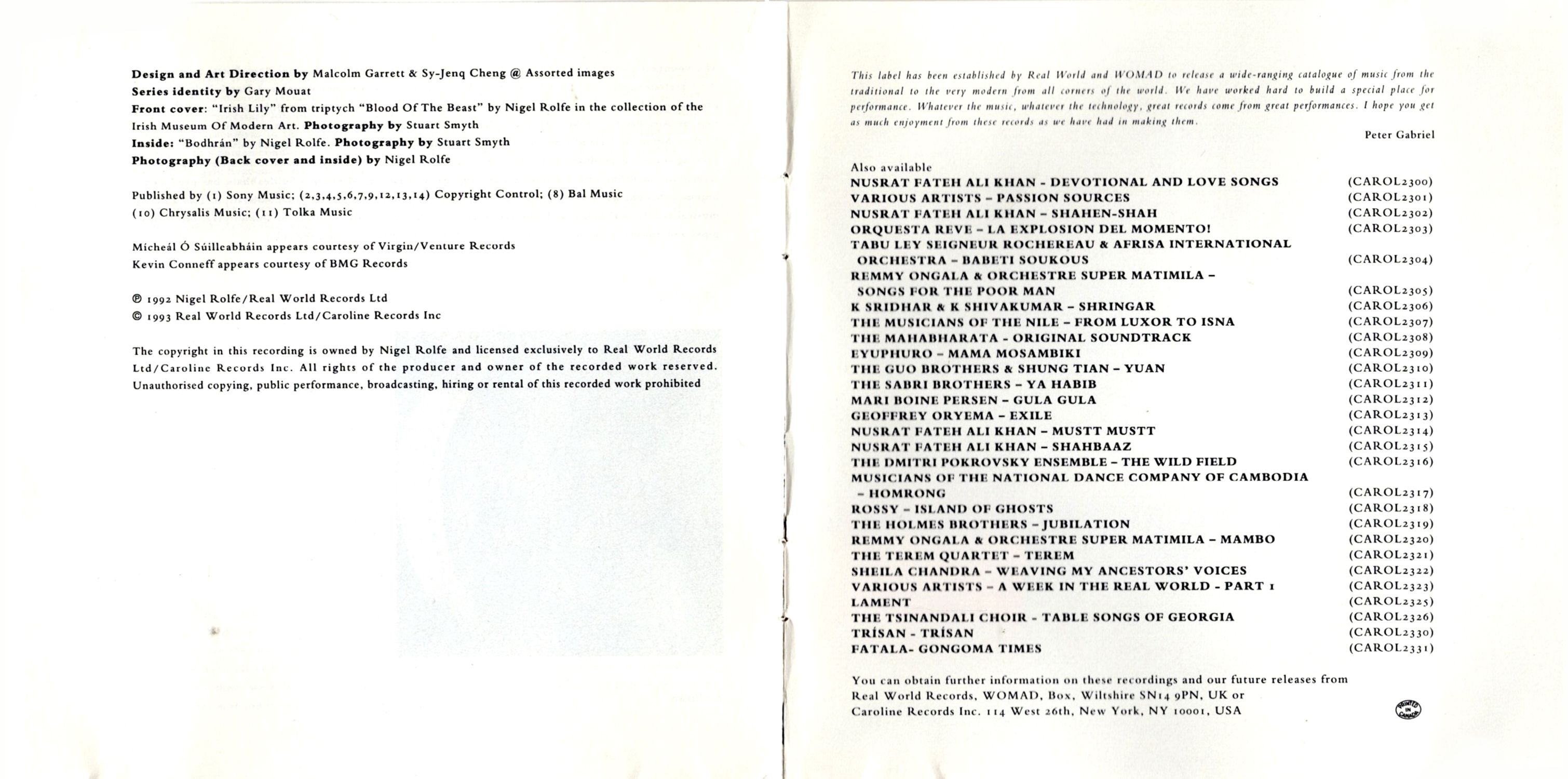 A decision taken at the outset was to present the music in its purest unadorned form with no accompaniment and without resort to any forms of "studio techniques." As well as being faithful to the tradition I feel that the impact of the music is thus enhanced and its intent is made clear and unambiguous.