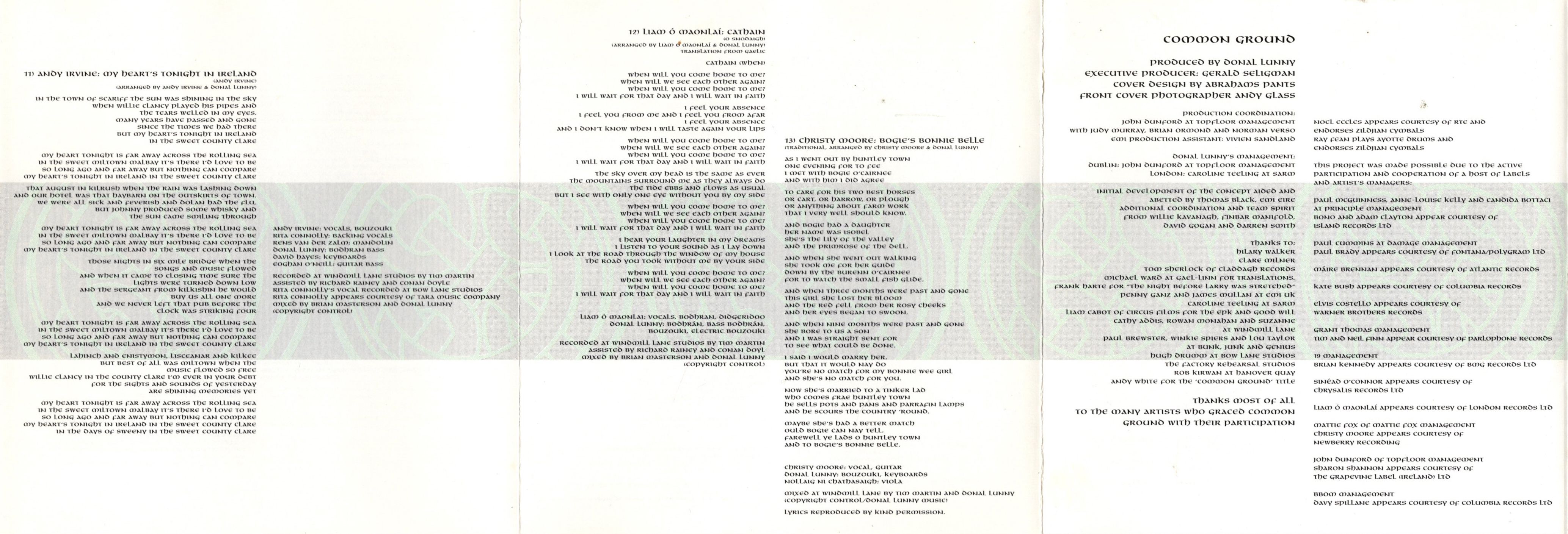 - Mixed at Windmill Lane Studios by Brian Masterson & Dónal Lunny