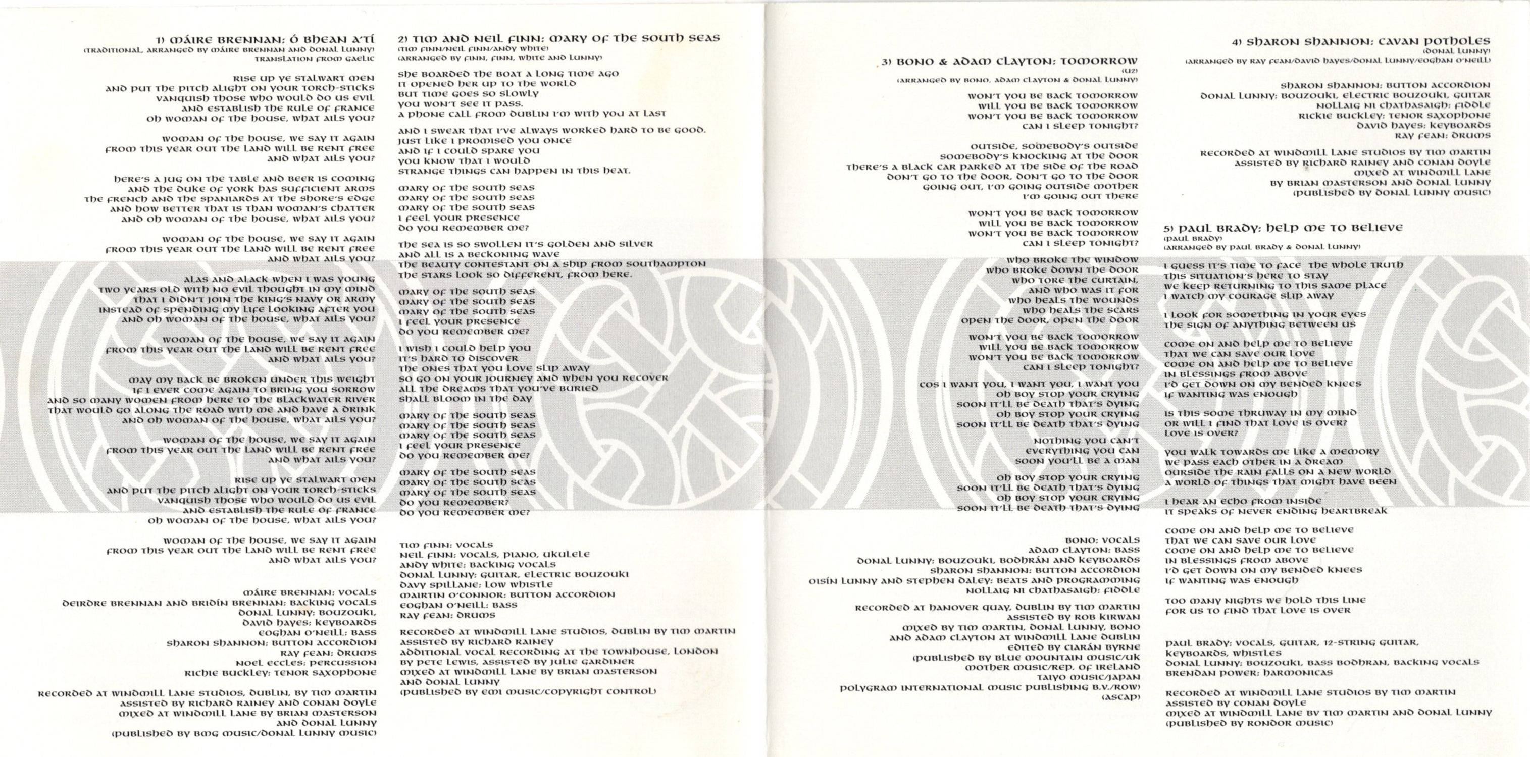 - Mixed by Brian Masterson, Dónal Lunny Bono & Adam Clayton at Windmill Lane, Dublin