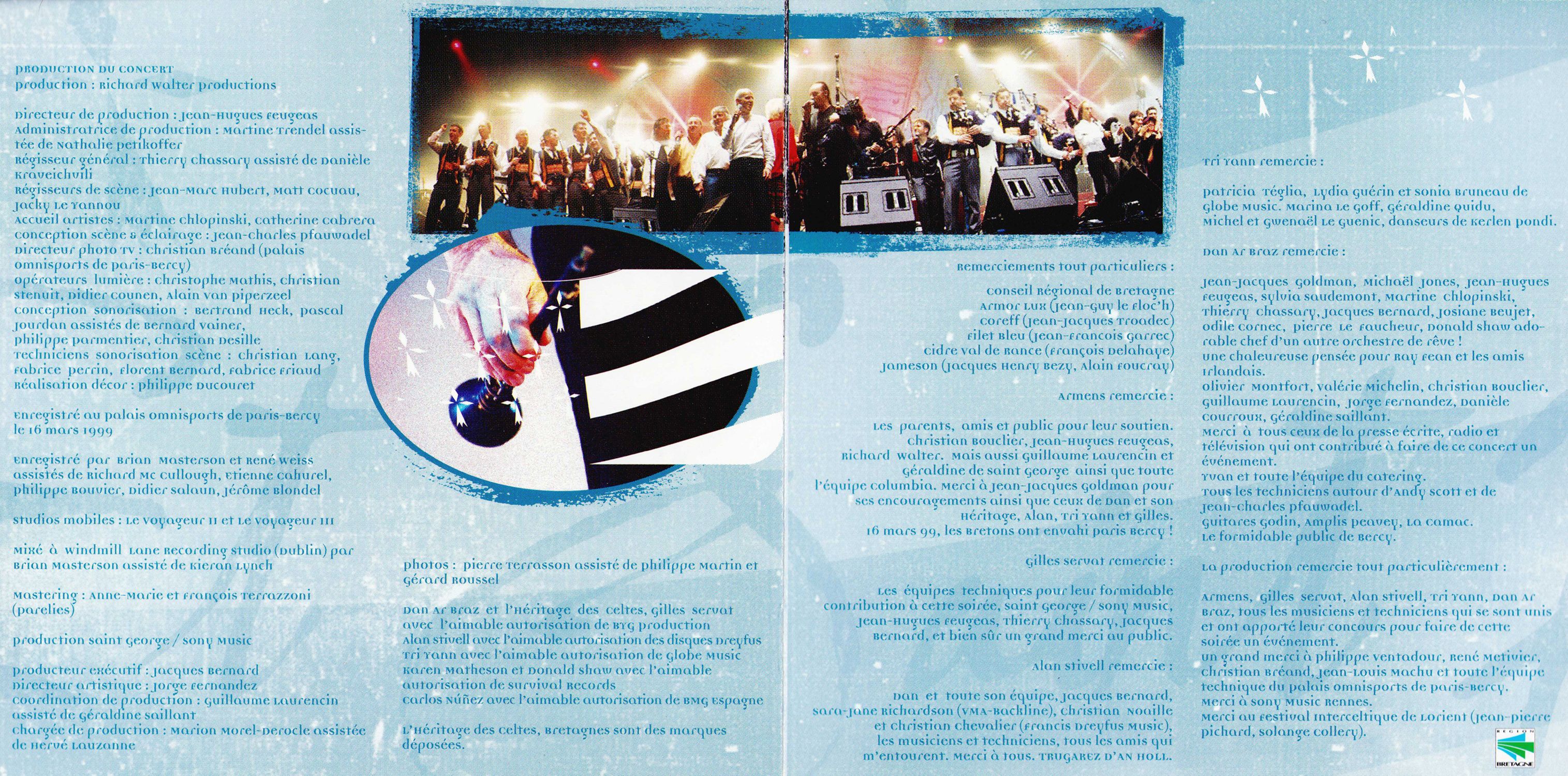 - Parents, friends and the public for their support. Christian Bouclier, Jean-Huques Feugeas, Richard Walter. But also Quillaume Laurencin & Géraldine De Saint-Qeorge as well as the entire Columbia team. Thanks to Jean-Jacques Goldman for his encouragement as well as those of Dan and his Heritage, Alan, Tri Yann and Gilles. March 16, 99, The Bretons invaded Paris Bercy!
