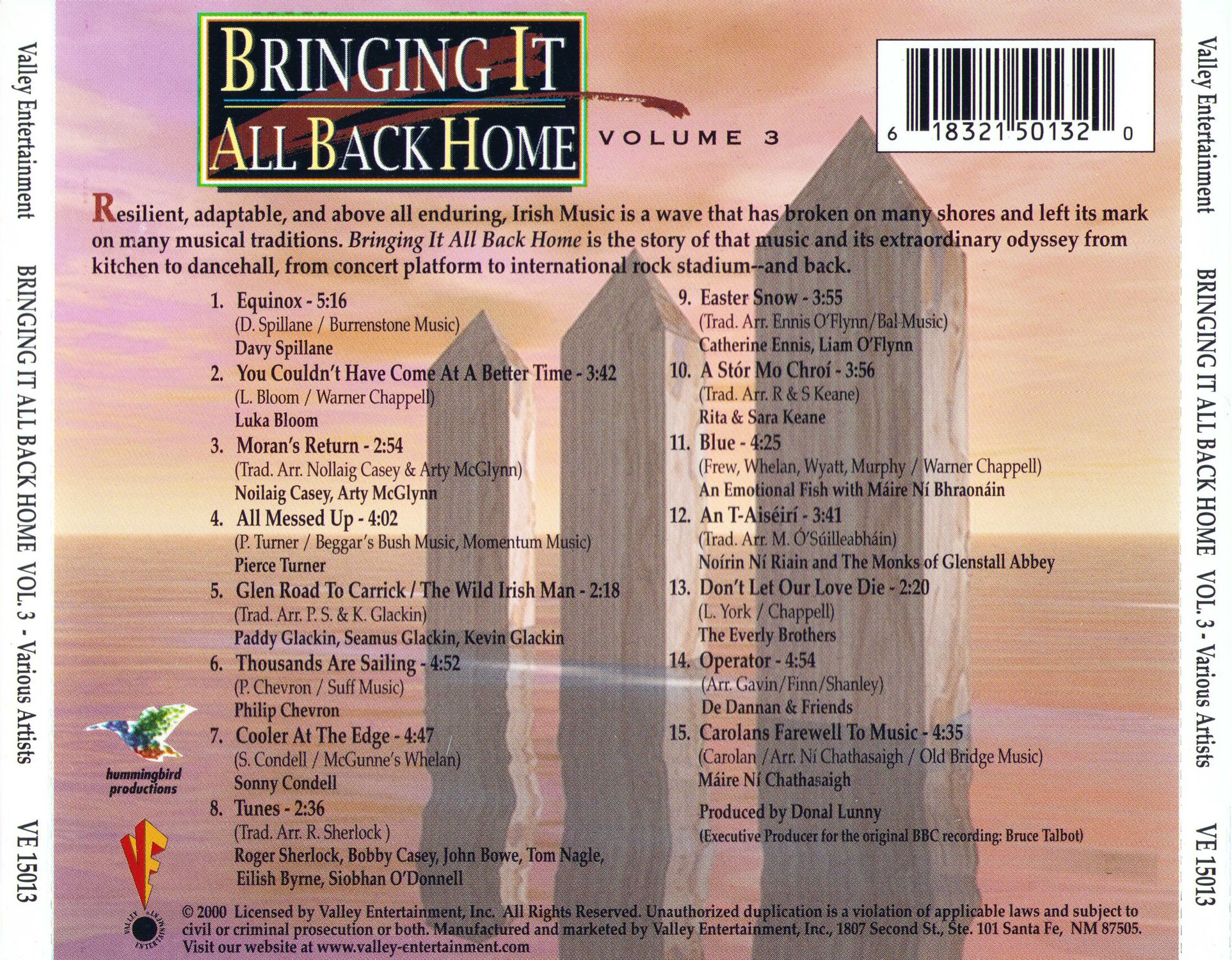 Emigration, one Irish historian has noted, is a mirror in which Ireland sees itself reflected. Emigration and the story of Irish music are inextricably bound together. Both tell stories of exile, displacement, resilience, and a fierce identification with Ireland. It comes as no surprise that Bringing It All Back Home is now considered a landmark television series, further acknowledged by an Emmy win in 1994. Taken as a whole, these recordings, now back in print for the first time in nearly a decade, have become an enduring classic which celebrates Irish music culture in its widest sense.