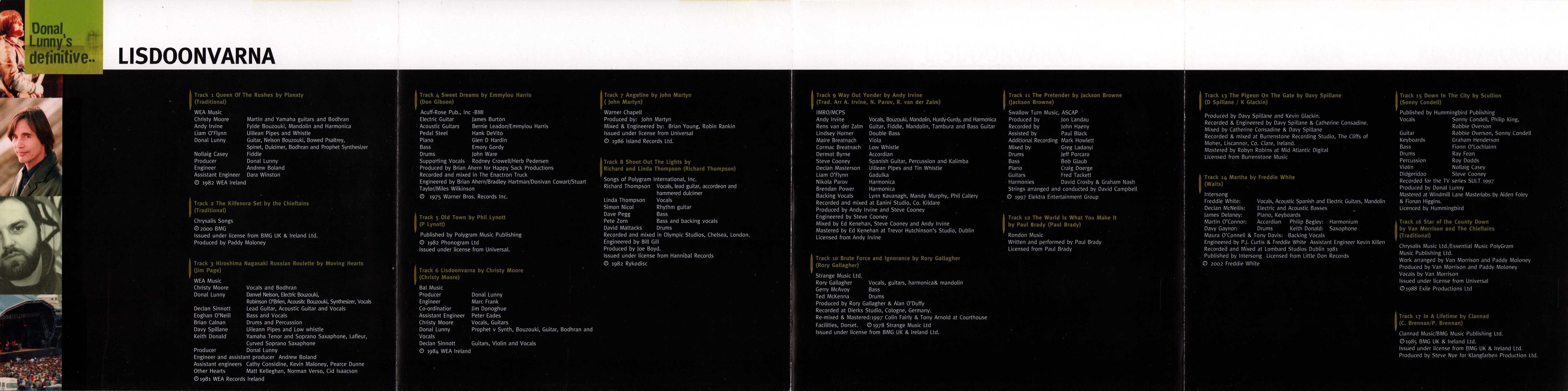 Donal Lunny: Guitar, Nelson Bouzouki, Bowed Psaltrey, Spinet, Dulcimer, Bodhran & Prophet Synthesizer