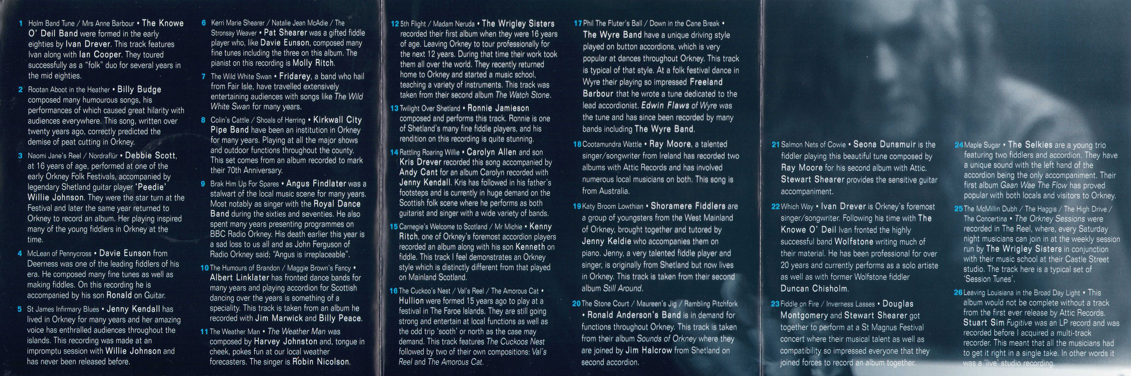 This album is surely the definitive collection of Orkney's traditional musicians, a 'must have' for anyone interested in our musical heritage.