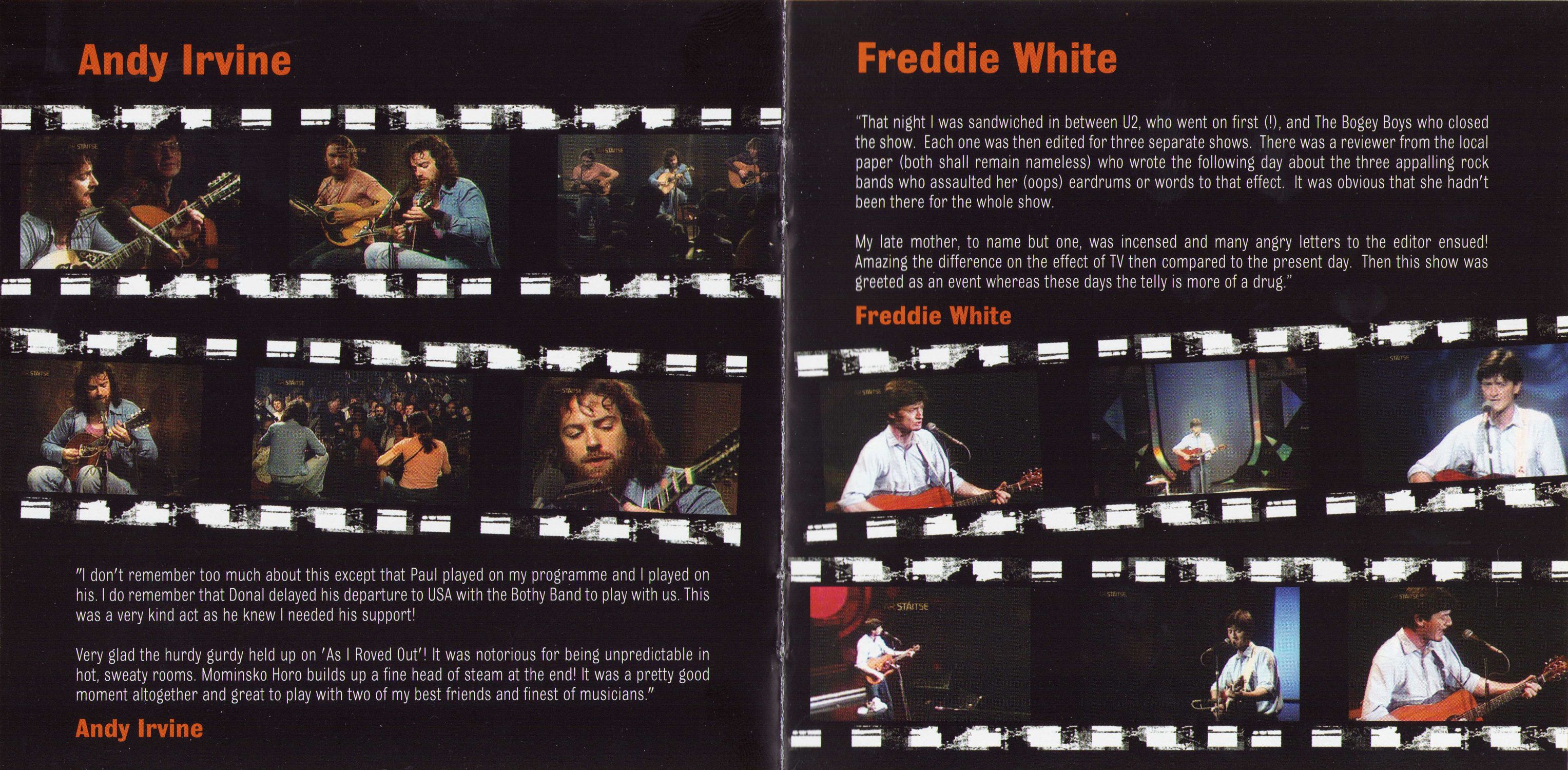 "I don't remember too much about this except that Paul played on my programme and I played on his. I do remember that Donal delayed his departure to USA with the Bothy Band to play with us. This was a very kind act as he knew I needed his support! Very glad the hurdy gurdy held up on 'As I Roved Out'! It was notorious for being unpredictable in hot, sweaty rooms. Mominsko Horo builds up a fine head of steam at the end! It was a pretty good moment altogether and great to play with two of my best friends and finest of musicians."