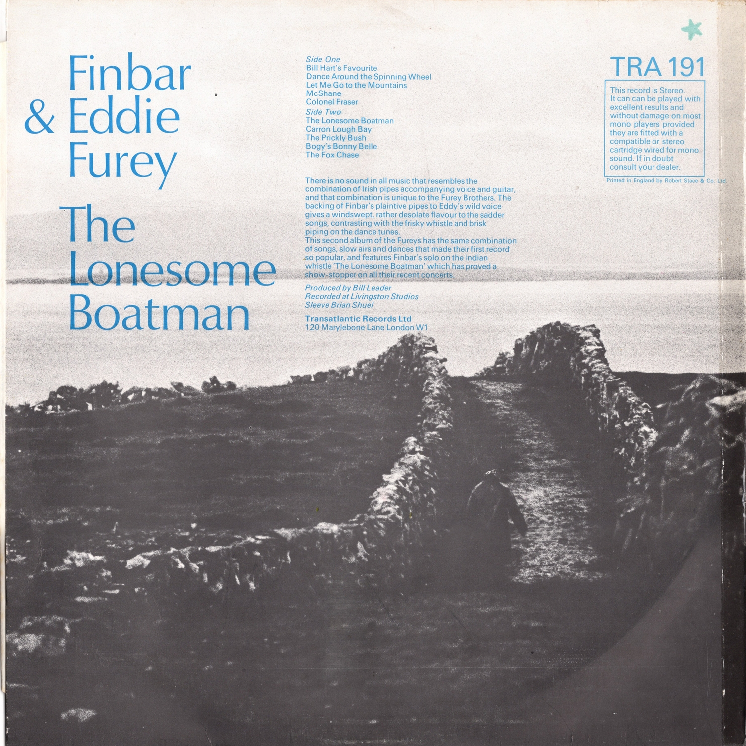 This second album of the Fureys has the same combination of songs, slow airs and dances that made their first record so popular, and features Finbar's solo on the Indian whistle The Lonesome Boatman which has proved a show-stopper on all their recent concert.