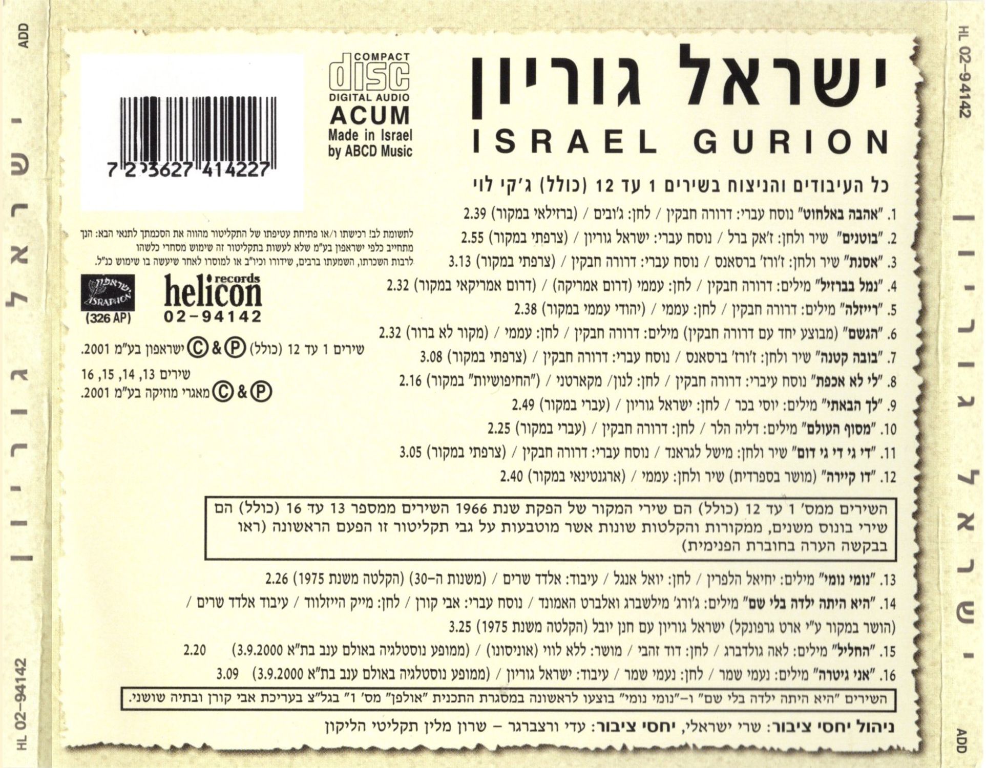 - 2001 - Israphon AP 326/Helicon 02-94142 CD (ISR)