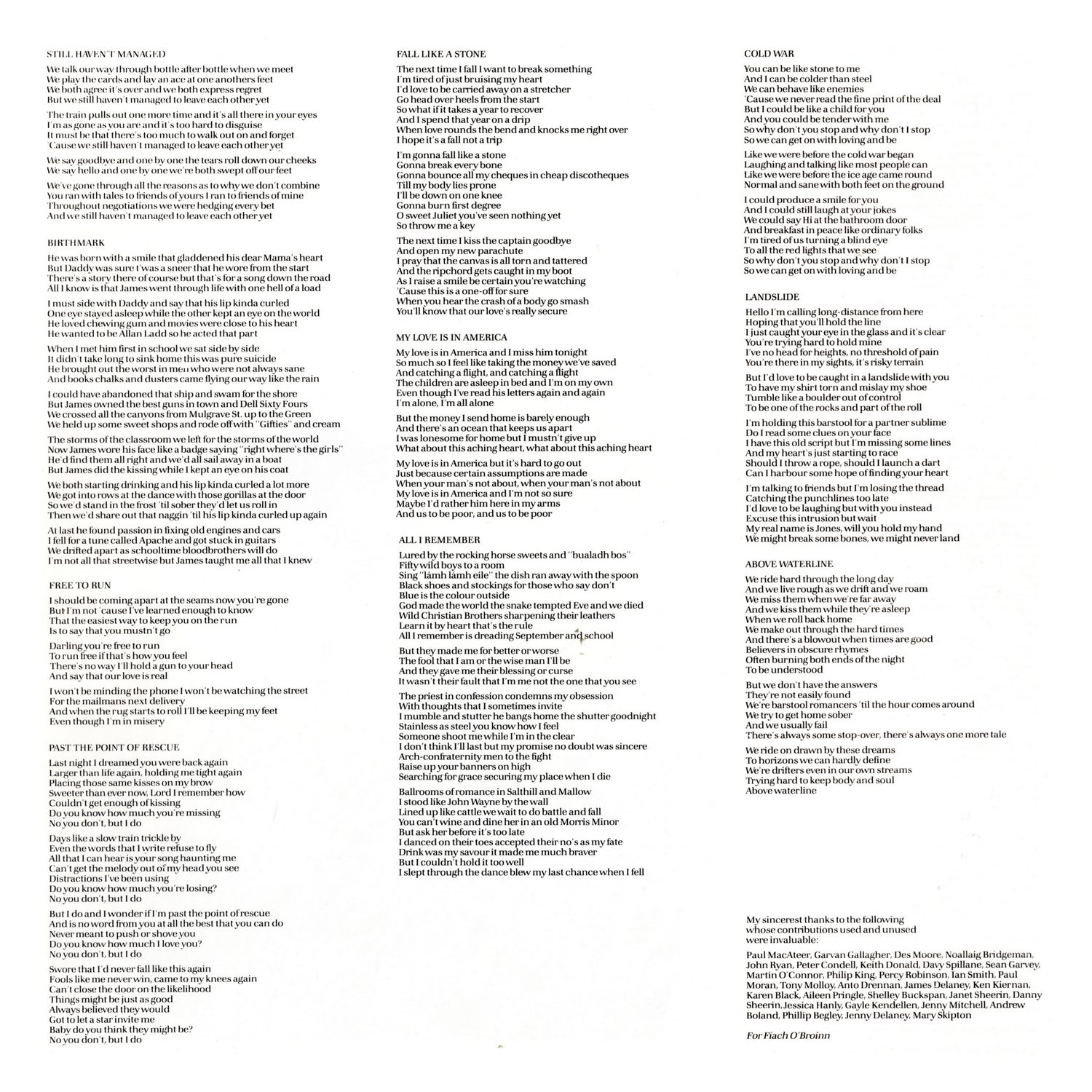 Paul MacAteer, Garvan Gallagher, Des Moore, Noallaig Bridgeman, John Ryan, Peter Condell, Keith Dónald, Davy Spillane, Seán Garvey,