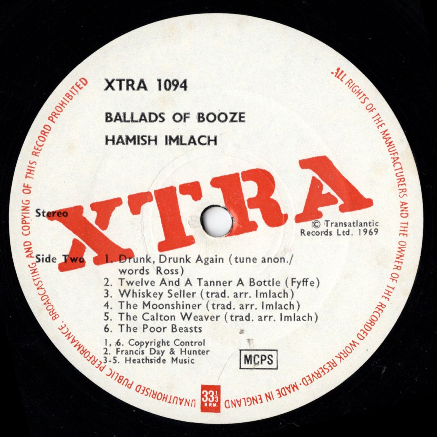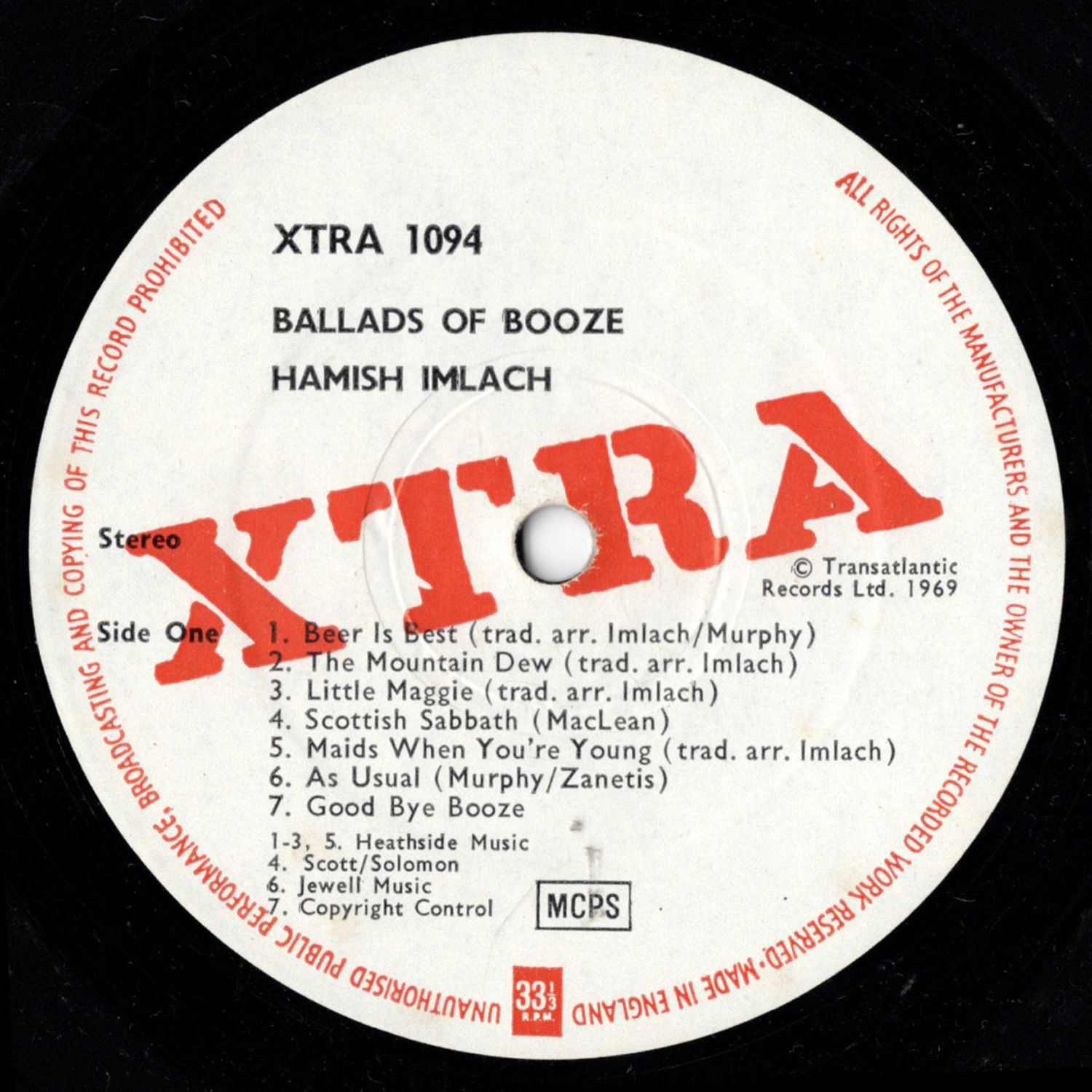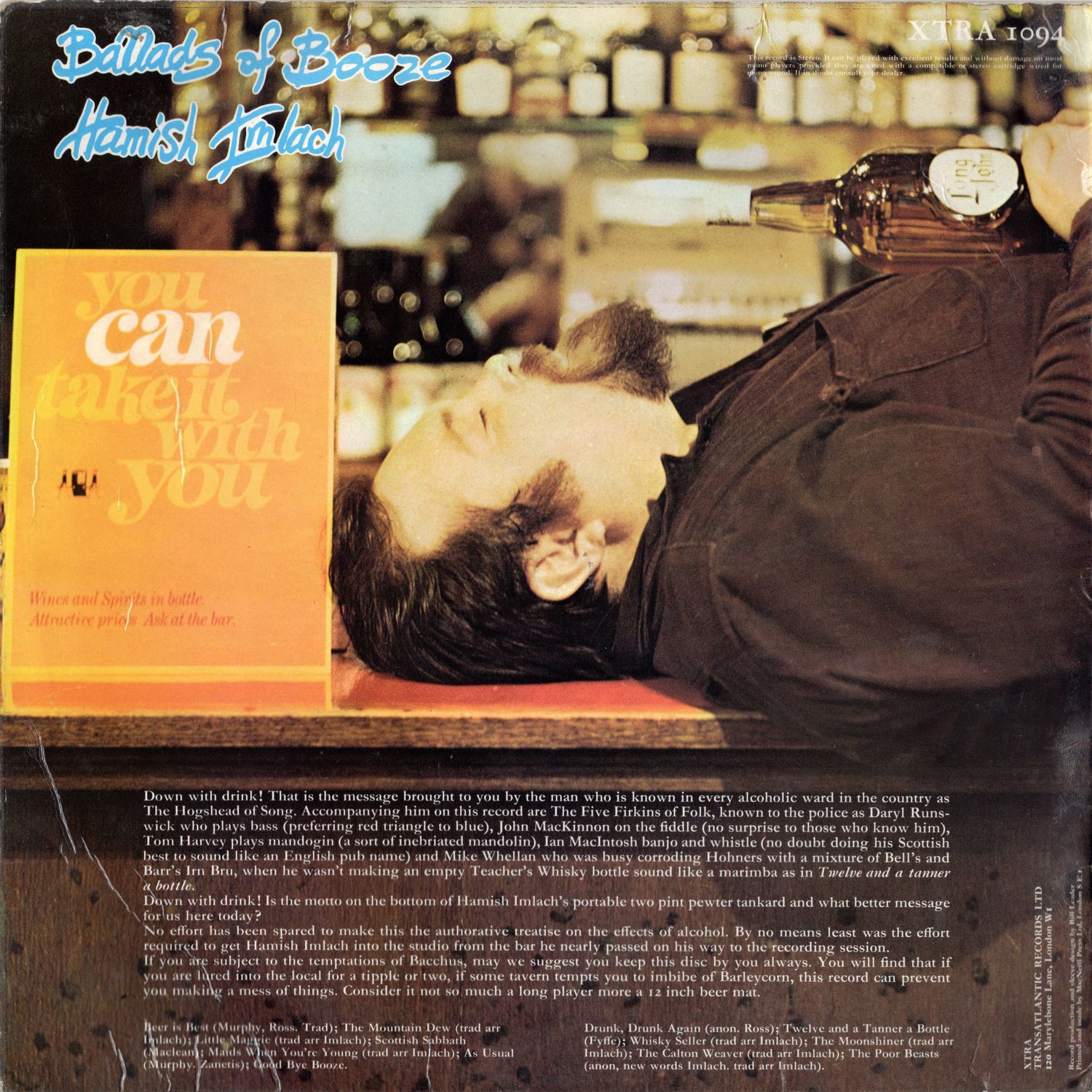 No effort has been spared to make this the authorative treatise on the effects of alcohol. By no means least was the effort required to get Hamish Imlach into the studio from the bar he nearly passed on his way to the recording session. If you are subject to the temptations of Bacchus, may we suggest you keep this disc by you always. You will find that if you are lured into the local for a tipple or two, if some tavern tempts you to imbibe of Barleycorn, this record can prevent you making a mess of things. Consider it not so much a long player more a 12-inch beer mat.