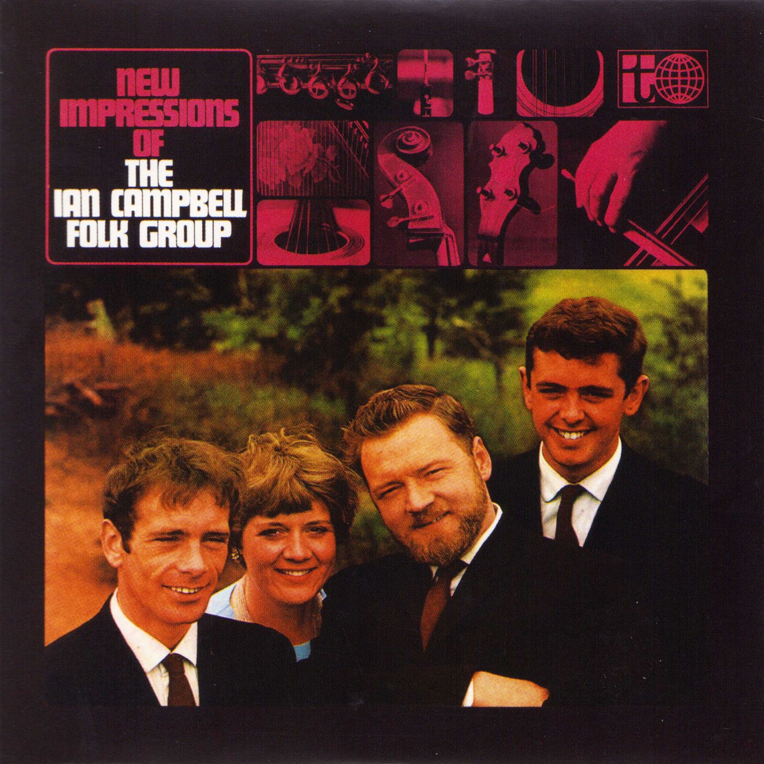 'Come Kiss Me' / 'The First Time Ever I saw Your Face' 7" was also released in 1965 as was their next album, CONTEMPORARY CAMPBELLS which was to see the final appearance of Dave Swarbrick, who left to form a duo with Martin Carthy, and the addition of Mansell Davies on bass. The following year brought yet more material from the band. As well as the aforementioned 'Guantanamera' / 'Mary Anne', 'One Eyed Reilly, (featuring a cartoon portrait of Ian on the front wearing an eye patch), backed with The Snow Is Falling', was released as TRA SP10, attributed to The Campbells'. An EP, 'Four Highland Songs', followed the same year. An album, The Rights Of Man', was released on Elektra in the USA following up the release of their first album on the same label in 1963. Flautist George Watt joined the band in 1966, appearing on two albums before leaving two years later. To celebrate the change of instrumentation … replacing the fiddle with the flute and adding piccolo, clarinet, cello and oboe, a new album was released appropriately titled NEW IMPRESSIONS OF THE IAN CAMPBELL FOLK GROUP.