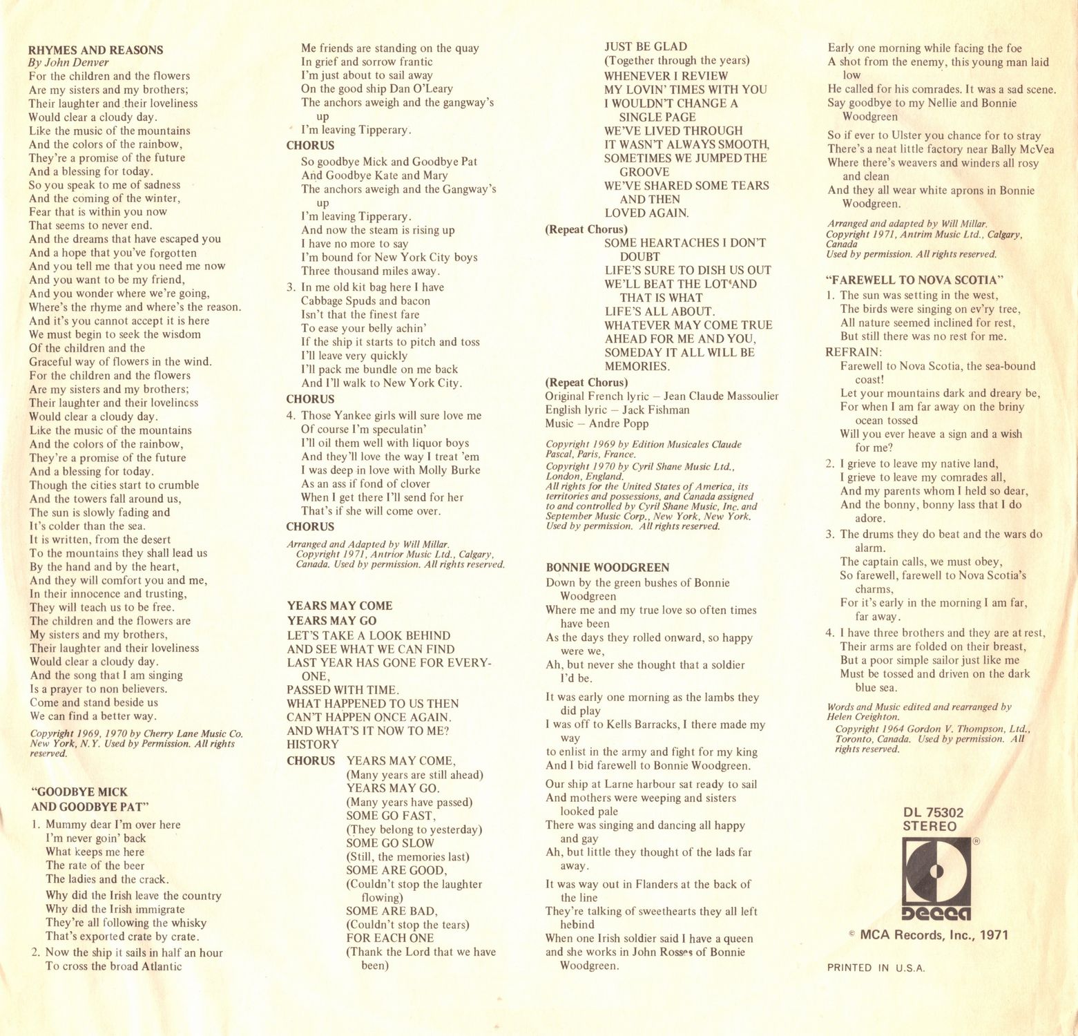 - Rhymes and Reasons (John Denver)