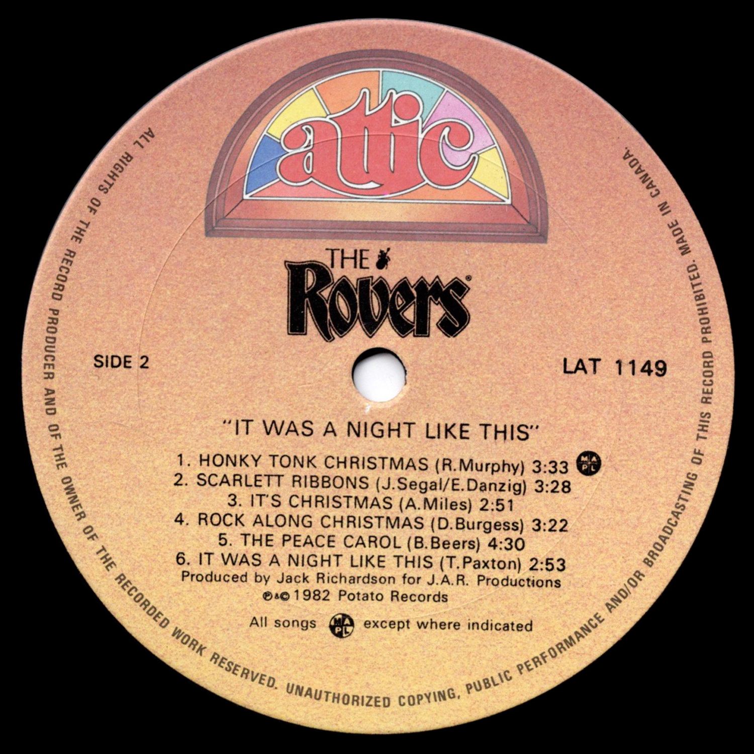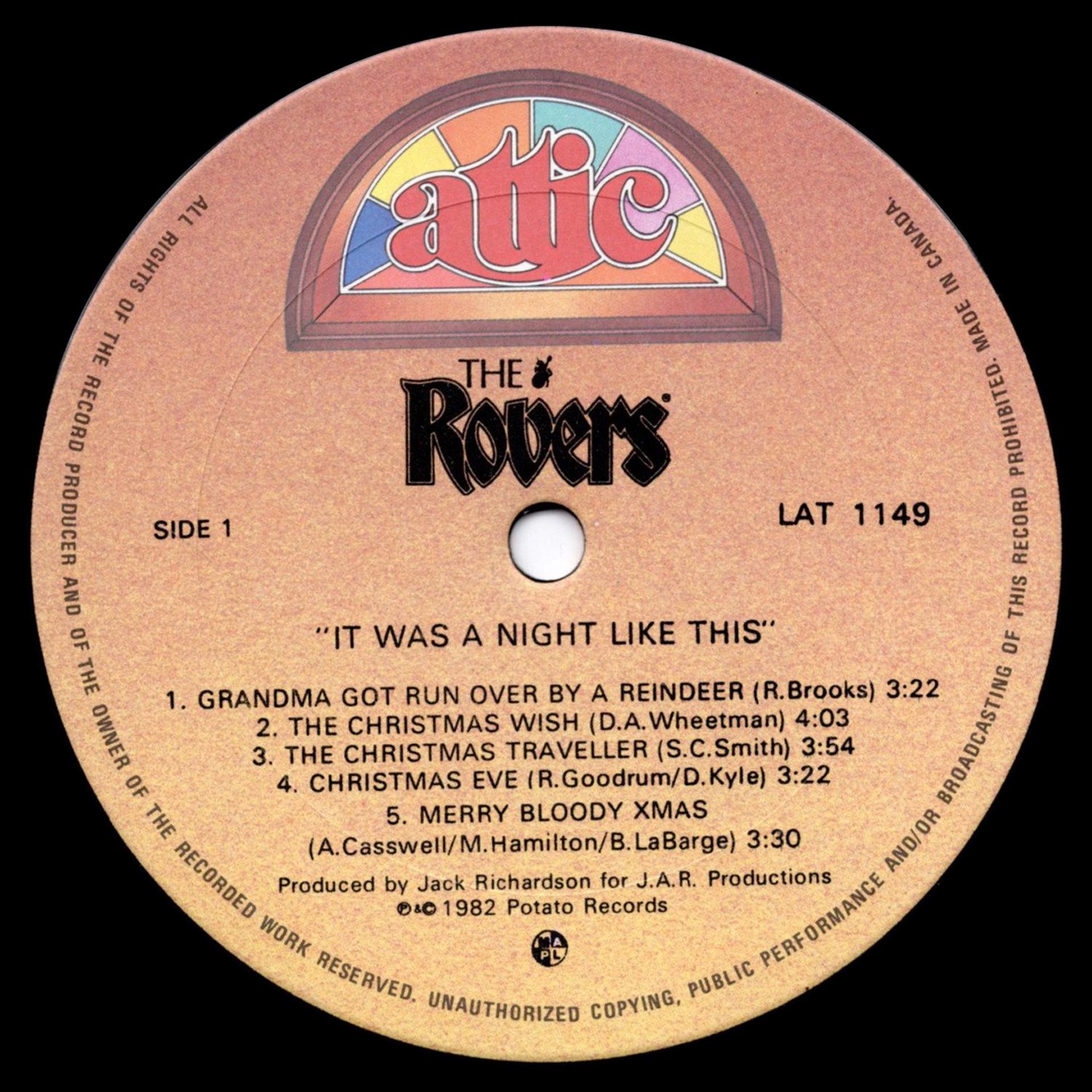 - 1982 - Attic LAT 1149 LP (CAN)