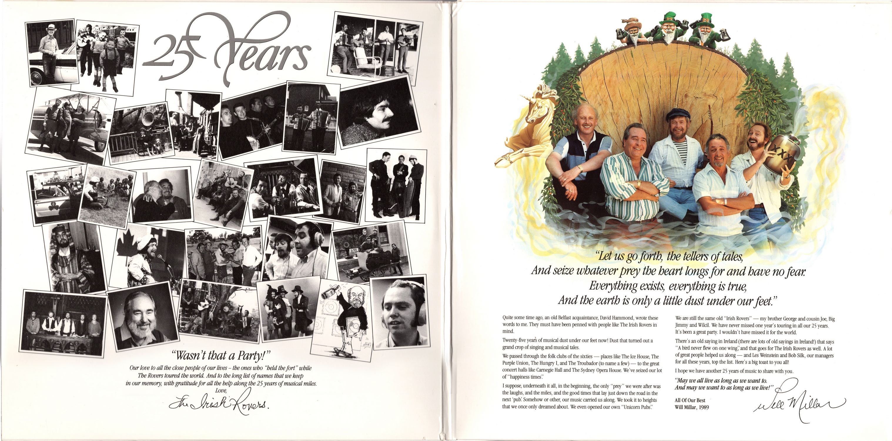 There's an old saying in Ireland (there are lots of old sayings in Ireland!) that says "A bird never flew on one wing" and that goes for The Irish Rovers as well. A lot of great people helped us along—and Les Weinstein and Bob Silk, our managers for all these years, top the list. Here's a big toast to you all!