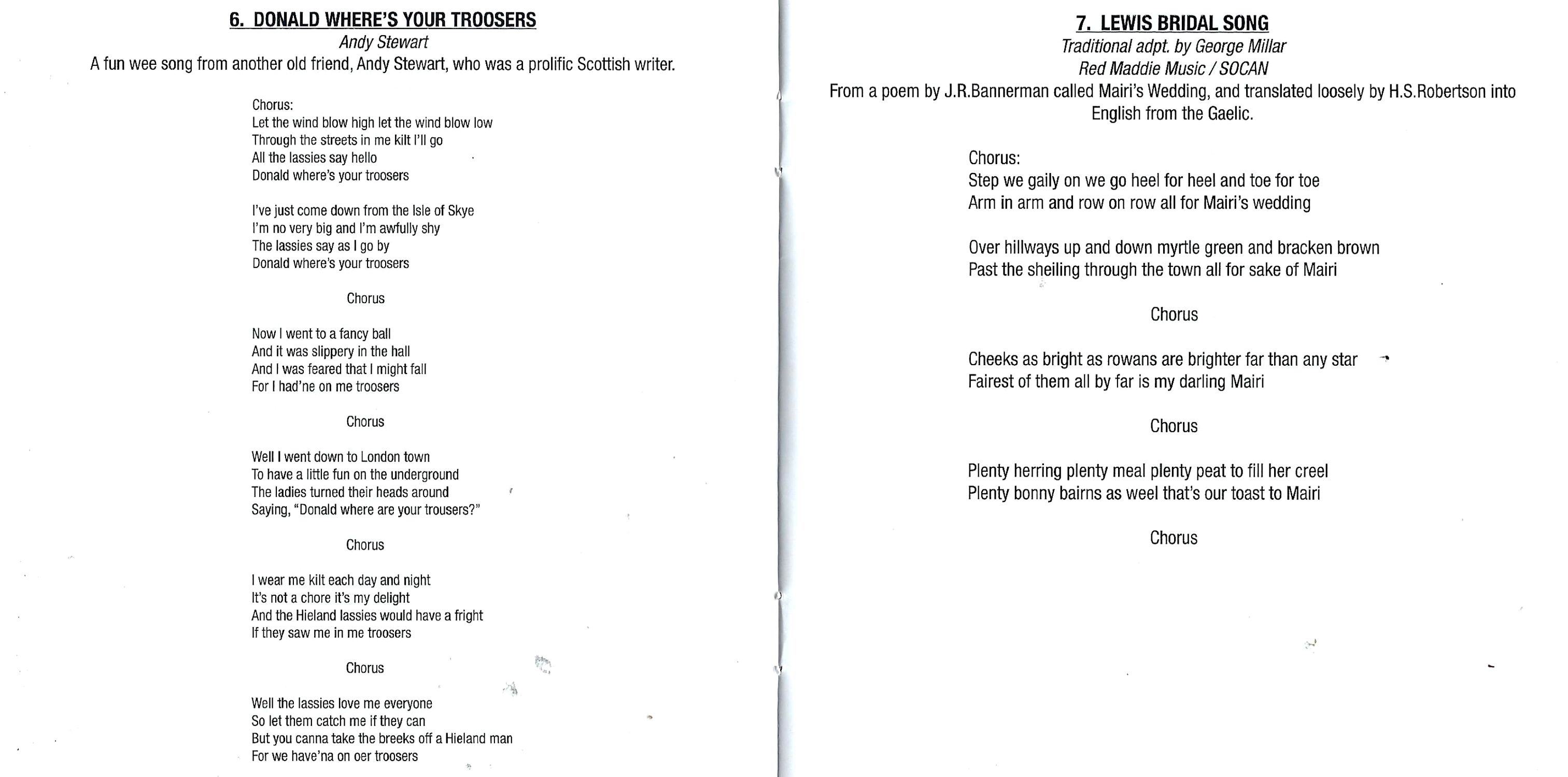 - Lewis Bridal Song (Trad. Adapt. George Millar)