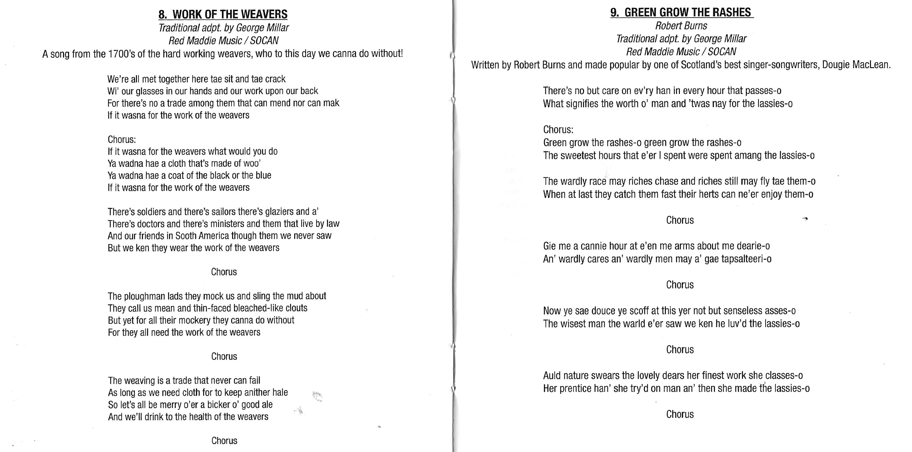 - Green Grow the Rashes (Robert Burns, Trad. Adapt. George Millar)