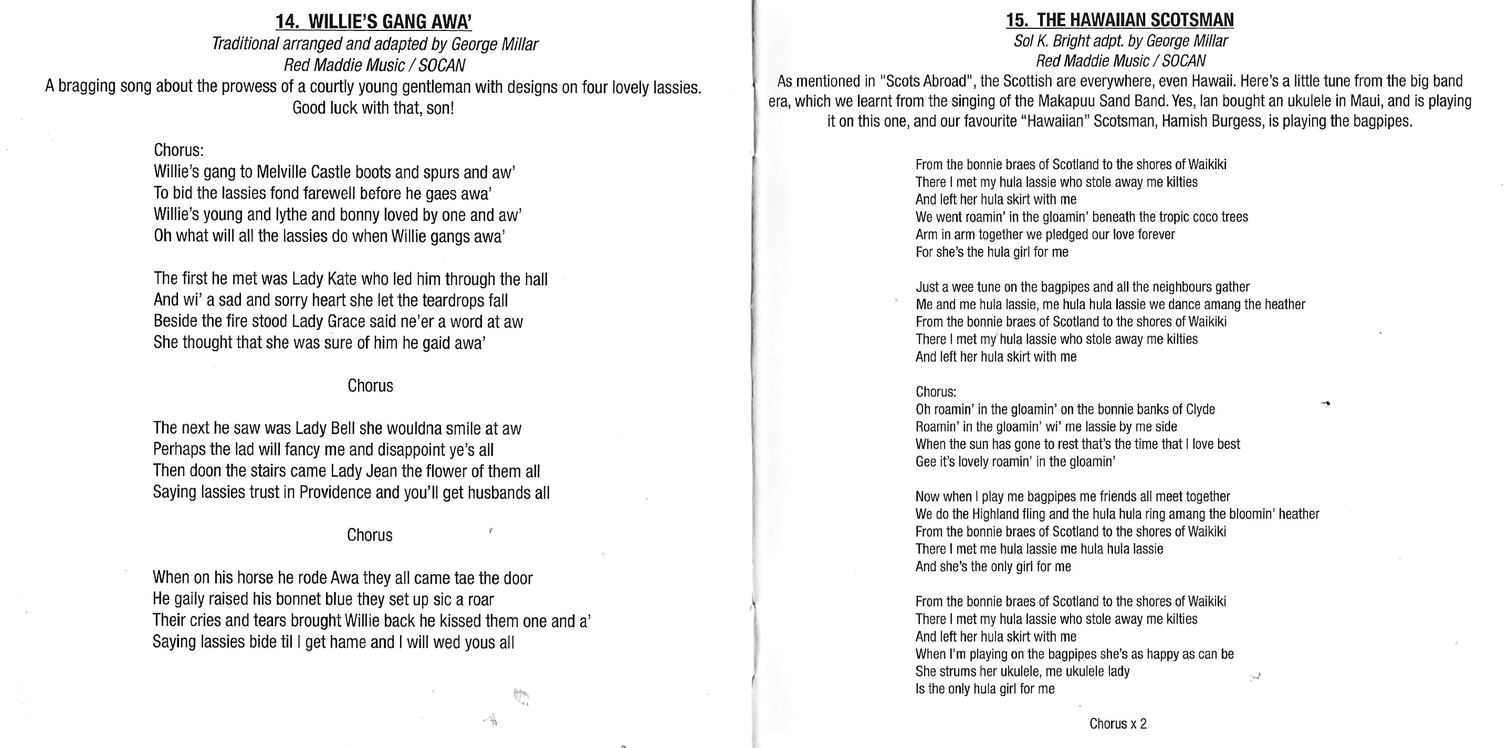 - Willie's Gang Awa' (Trad. Adapt. George Millar)