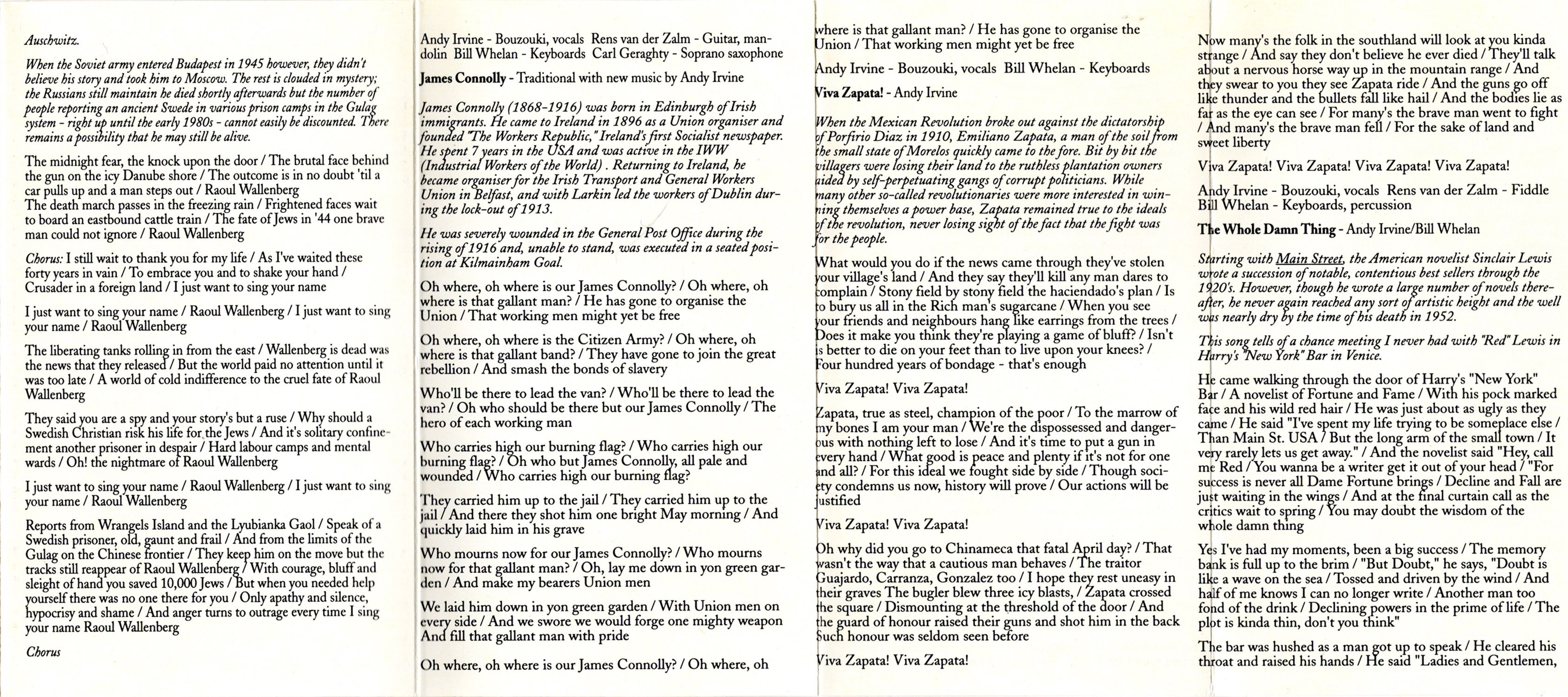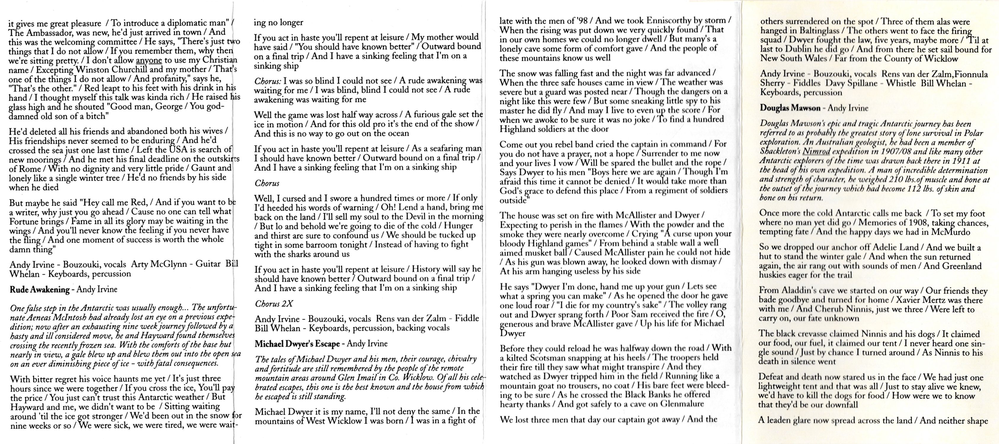Never Tire Of The Road — This started out as a song about my great hero, Woody Guthrie. Somewhere along the way it made a slight diversion and took in the early days of the "Wobblies" (Industrial Workers of the World) who followed the harvest in the Western States of America and, I suppose, just about anybody who finds themselves with a job orchard Travelling