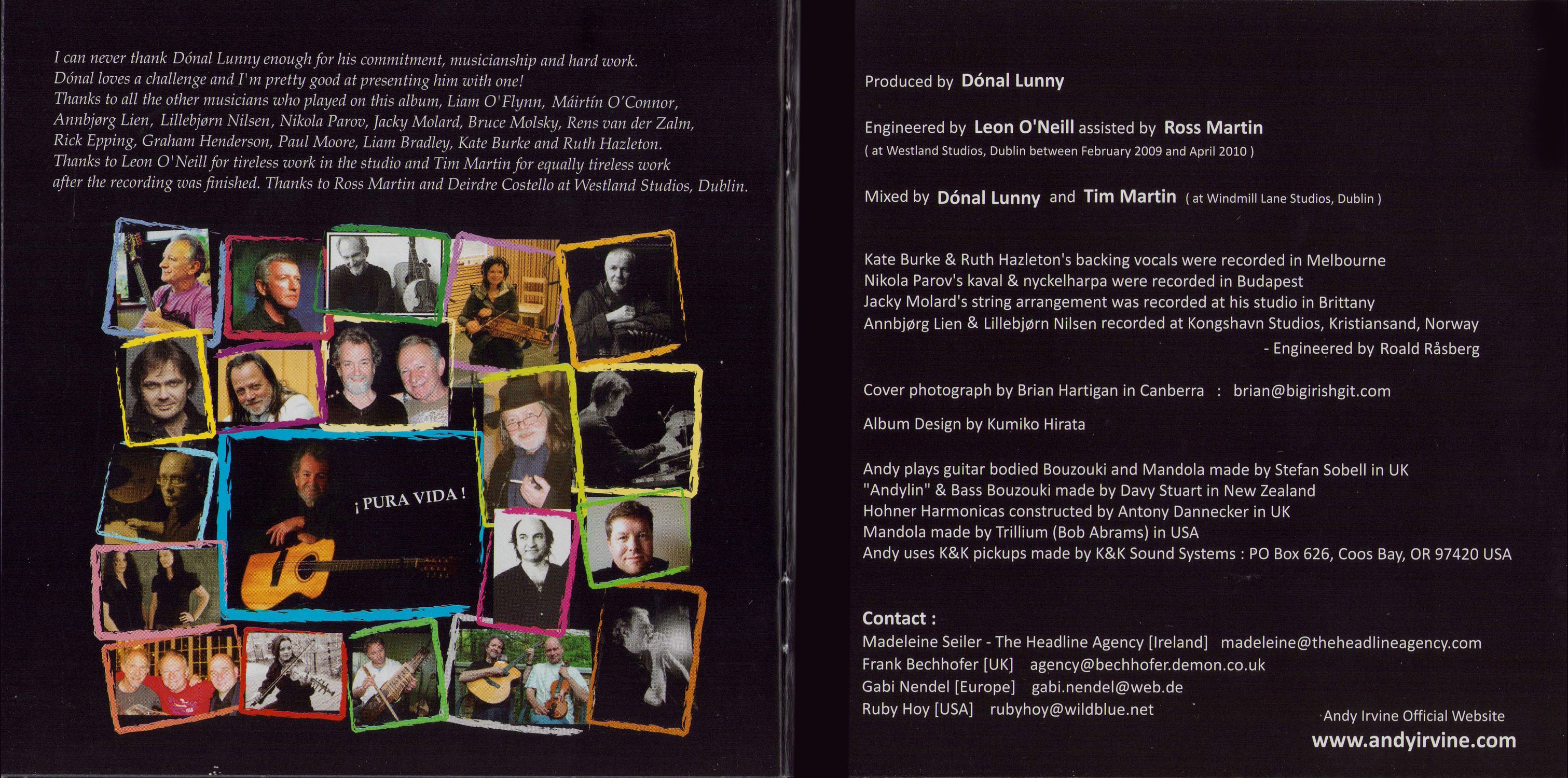 Thanks to Leon O'Neill for tireless work in the studio and Tim Martin for equally tireless work after the recording was finished. Thanks to Ross Martin and Deirdre Costello at Westland Studios, Dublin.
