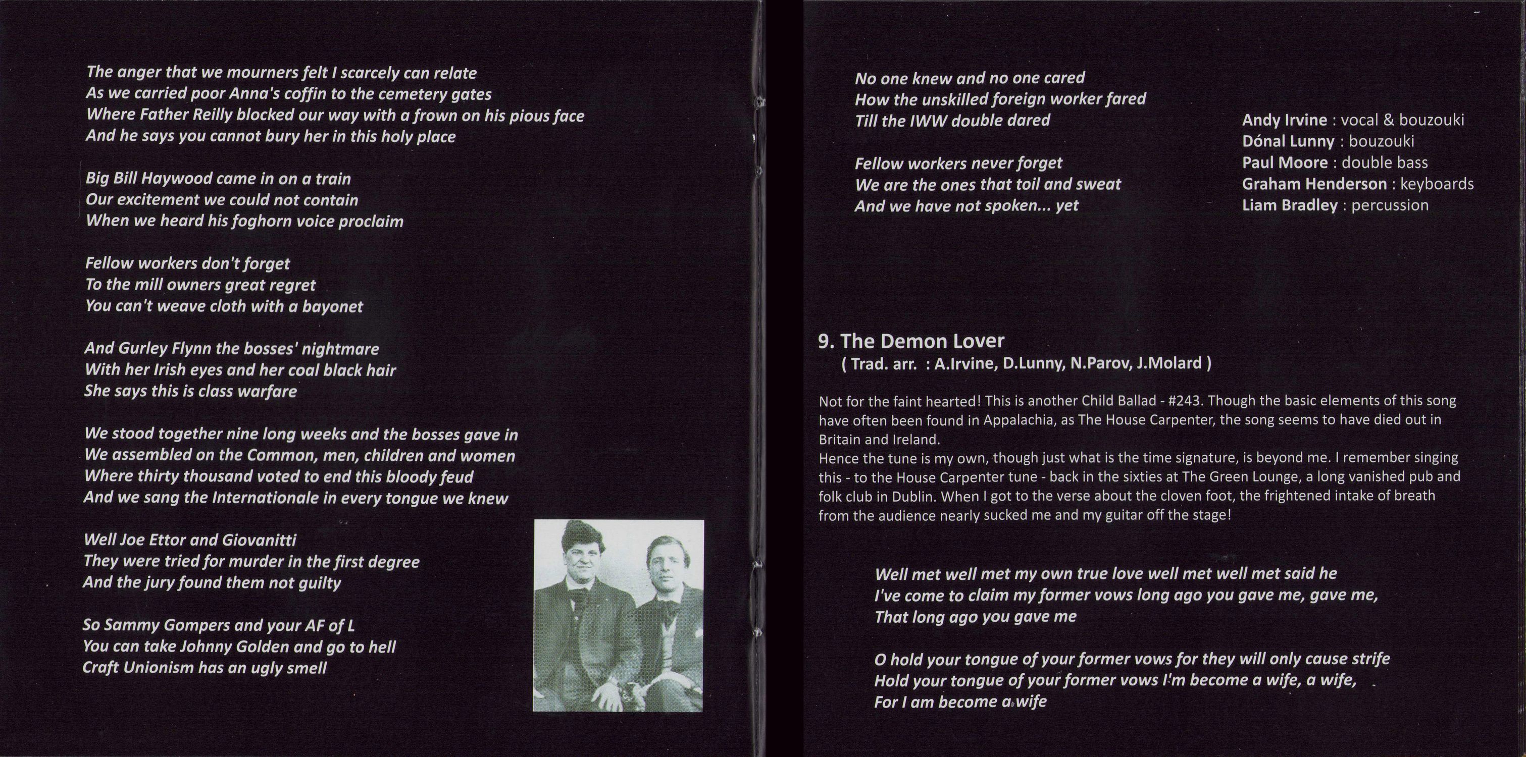 Hence the tune is my own, though just what is the time signature, is beyond me. I remember singing this — to the House Carpenter tune — back in the sixties at The Green Lounge, a long vanished pub and folk club in Dublin. When I got to the verse about the cloven foot, the frightened intake of breath from the audience nearly sucked me and my guitar off the stage!