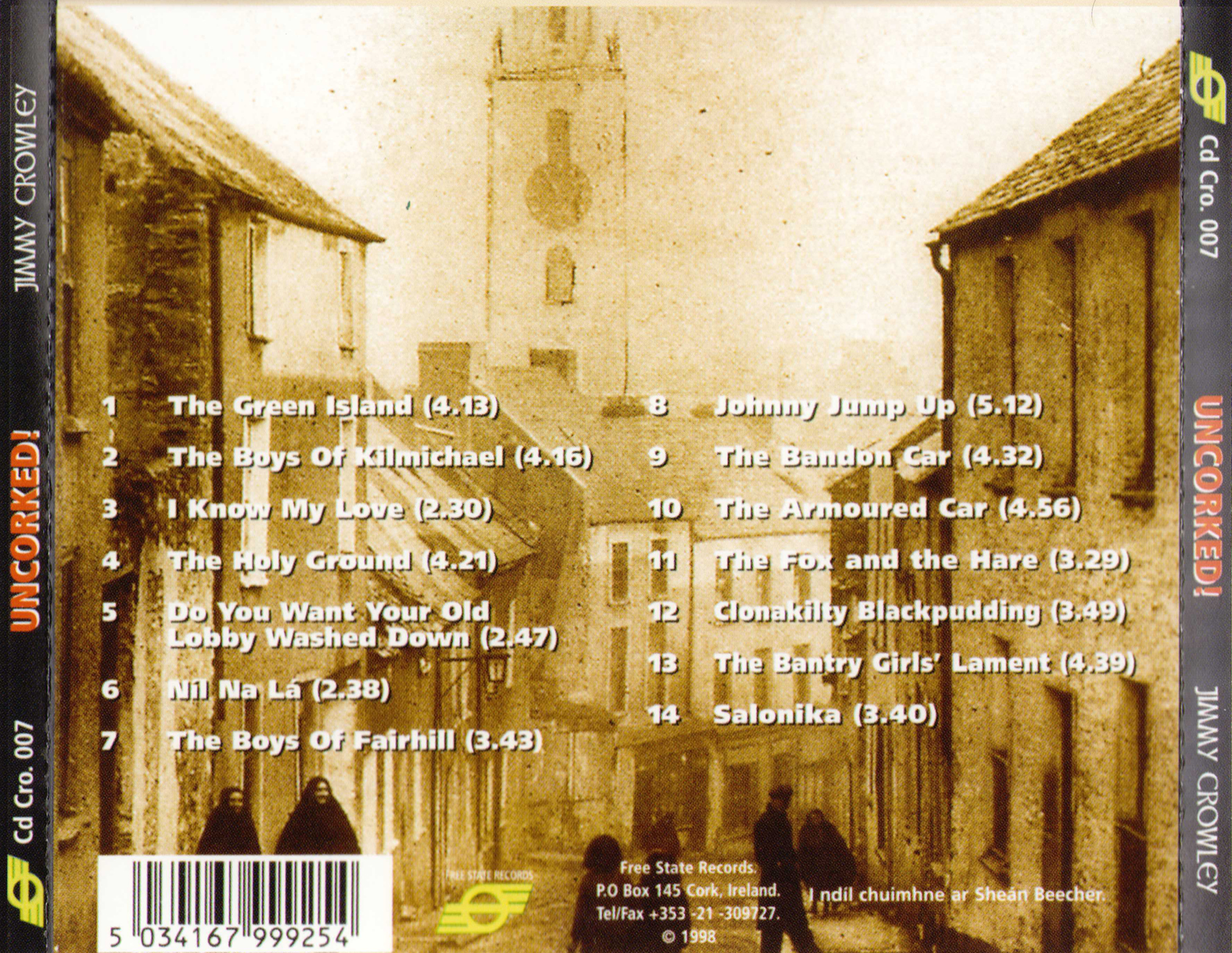 Uncorked is Jimmy's first live recording and it is long overdue because his wonderful communicative skills have never been captured on his studio recordings. Every time Jimmy performs live to an attentive audience he presents what amounts to a social history of Cork in the informative and always amusing introduction to his songs. He is so entertaining a performer that his friends and admirers, myself included, have been urging him to record live for years. Thankfully it was worth the wait because Jimmy has come up with the best selection of Cork songs ever compiled on one album.