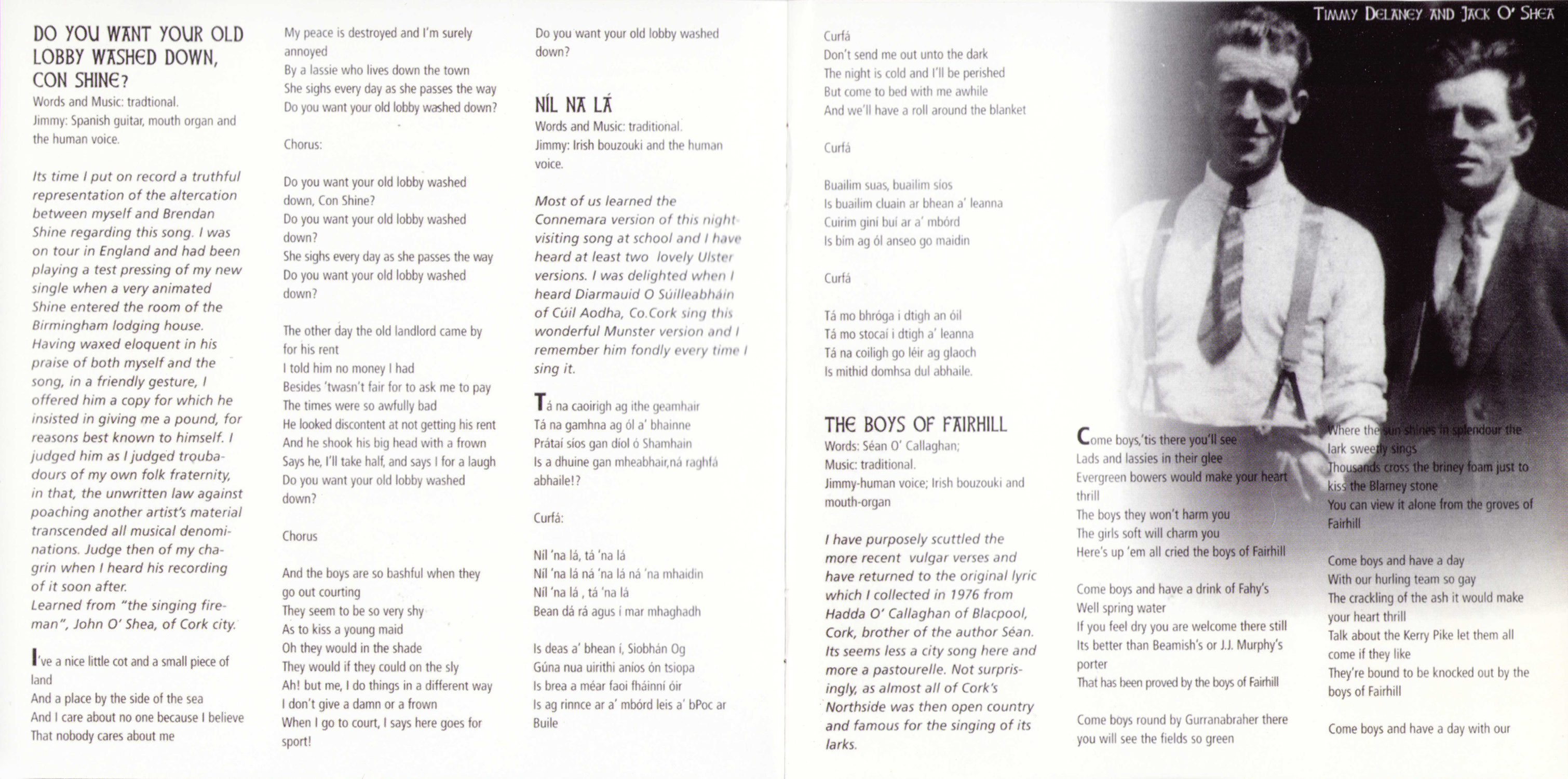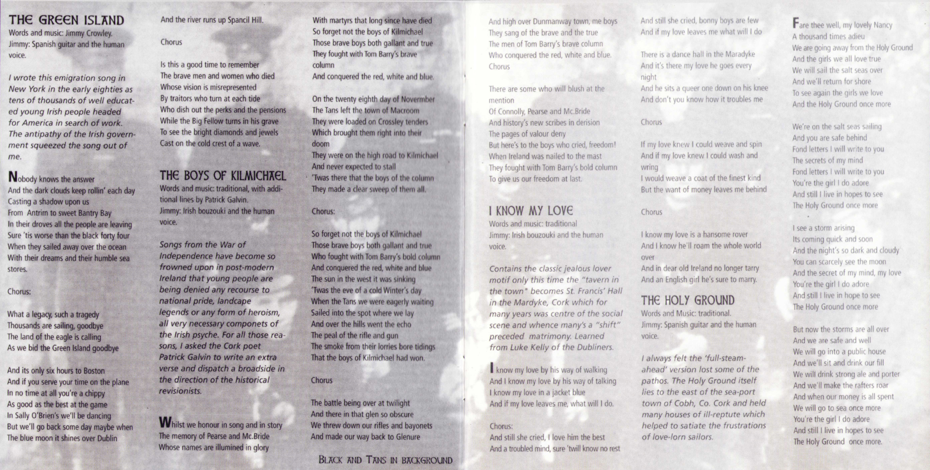 All the classic Cork songs that Jimmy has made his own are here, Salonika, The Boys of Fairhill and a dozen or so others.