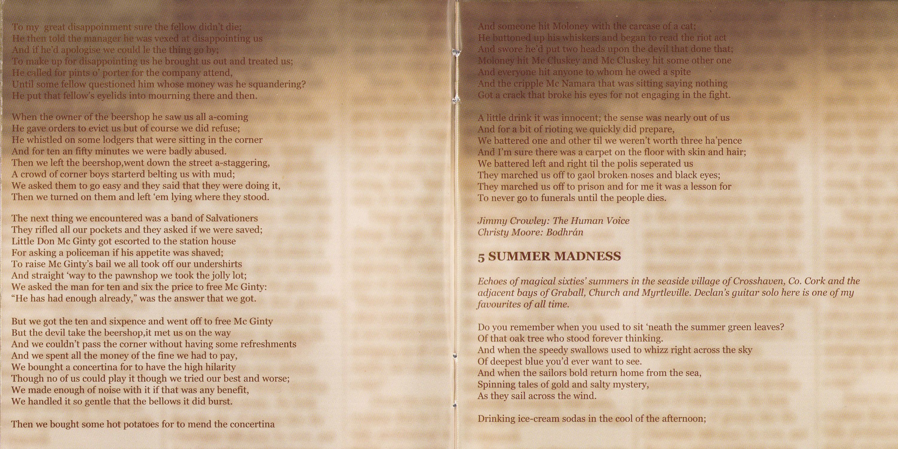 Summer Madness — Echoes of magical sixties' summers in the seaside village of Crosshaven, Co. Cork and the adjacent bays of Graball, Church and Myrtleville. Declan's guitar solo here is one of my favourites of all time.