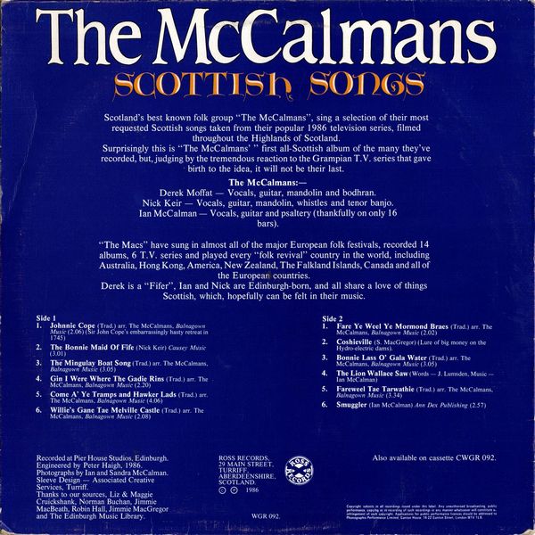 Surprisingly this is The McCalmans first all-Scottish album of the many they've recorded, but, judging by the tremendous reaction to the Grampian T.V. series that gave birth to the idea, it will not be their last.