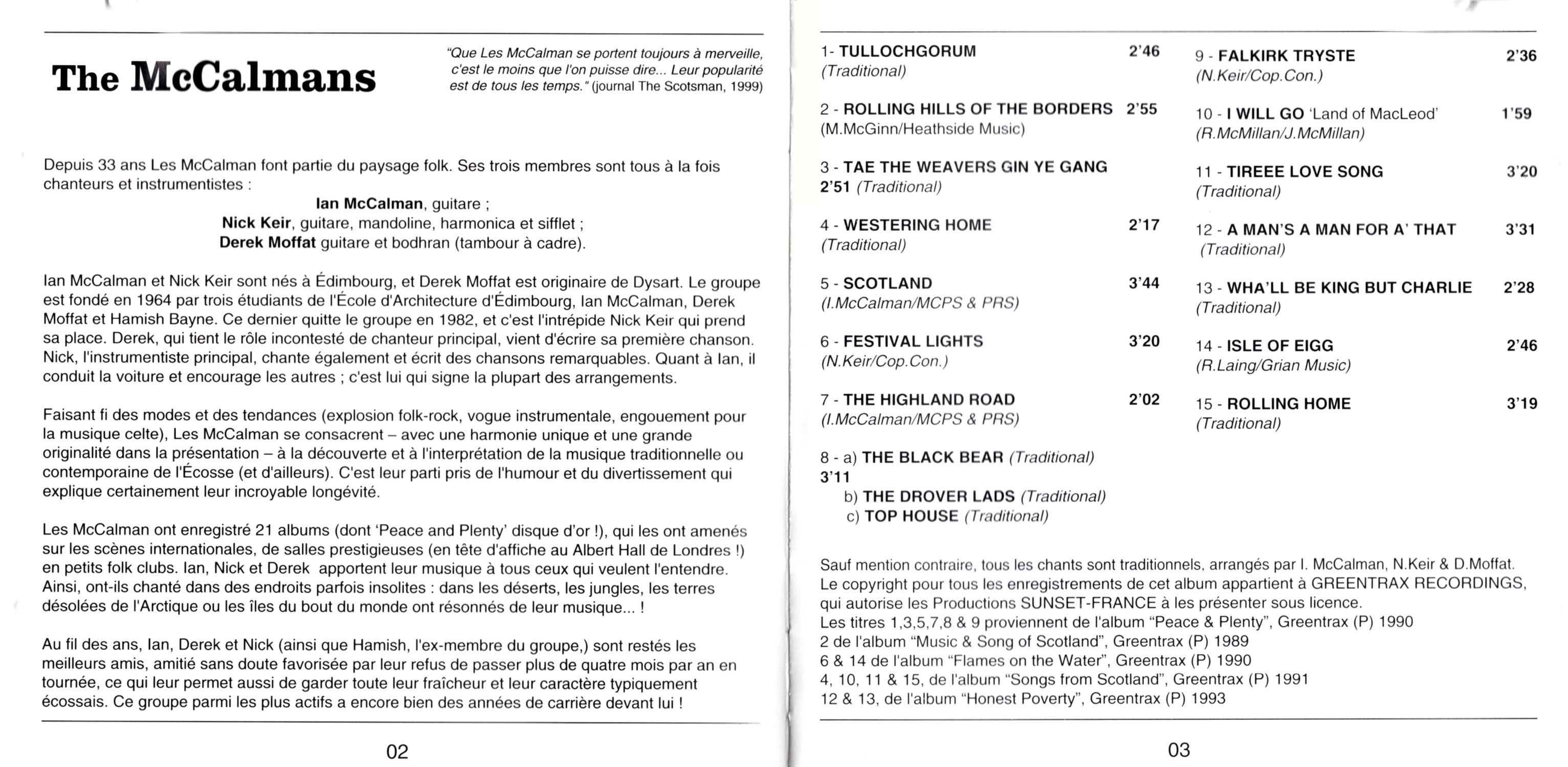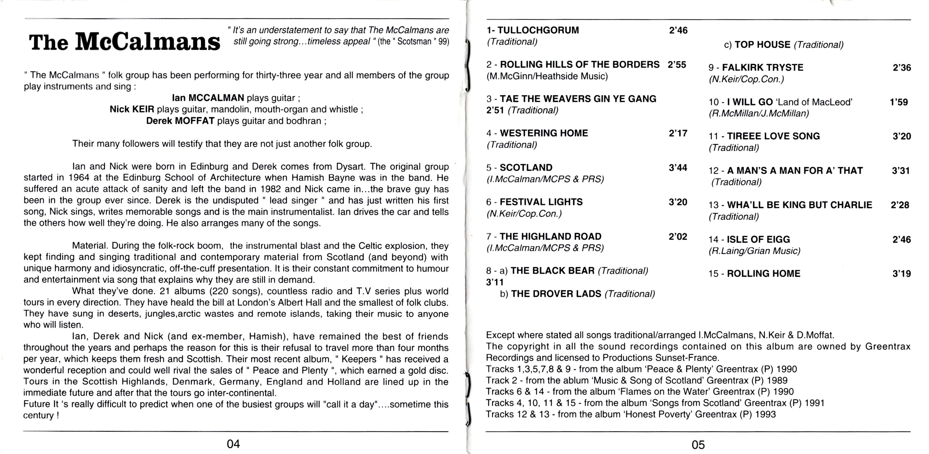"It's an understatement to say that The McCalmans are still going strong … timeless appeal" (the "Scotsman" 99)