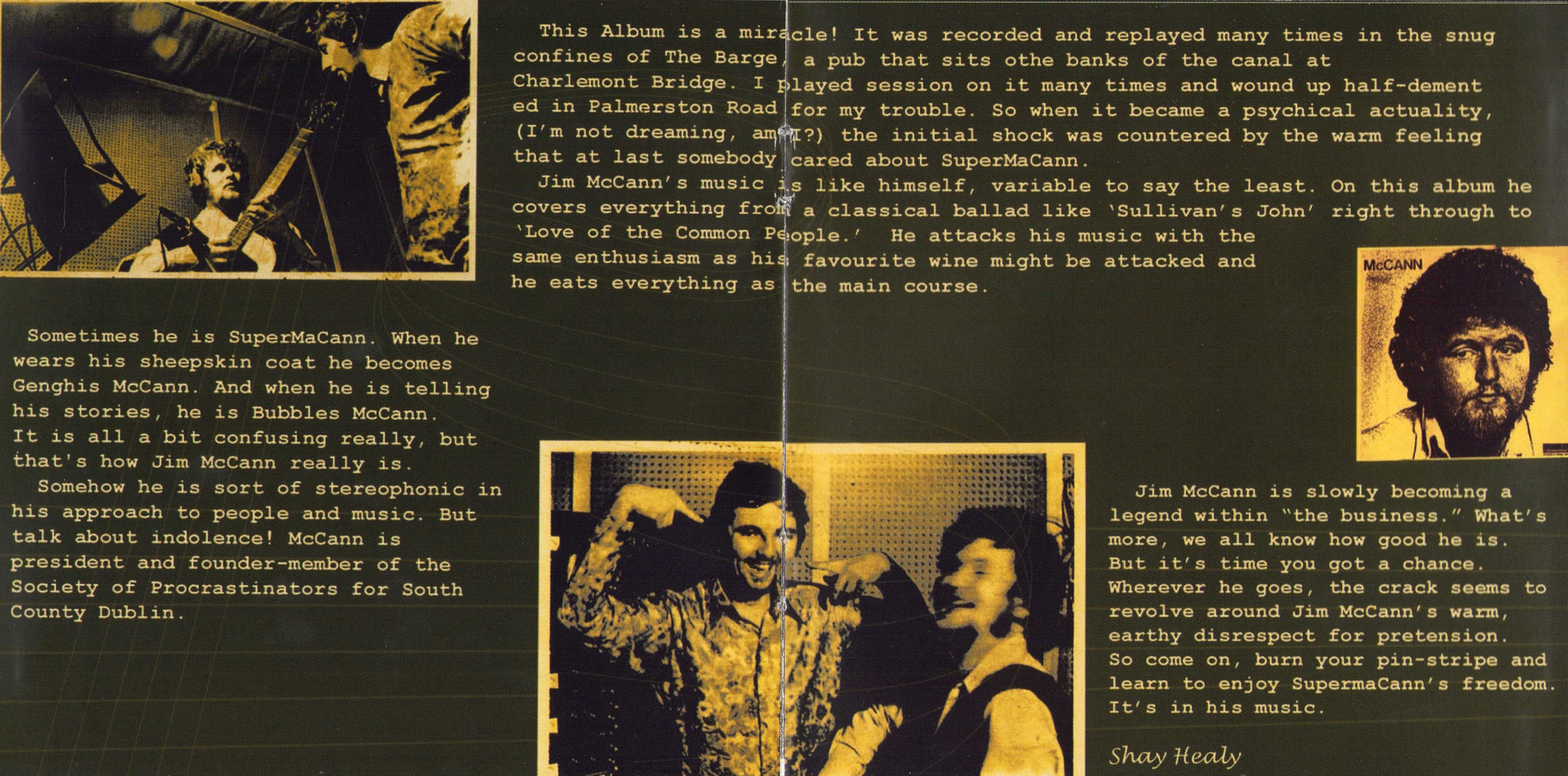 Jim McCann is slowly becoming a legend within "the business." What's more, we all know how good he is. But it's time you got a chance. Wherever he goes, the crack seems to revolve around Jim McCann's warm, earthy disrespect for pretension. So come on, burn your pin-stripe and learn to enjoy SupermaCann's freedom. It's in his music.