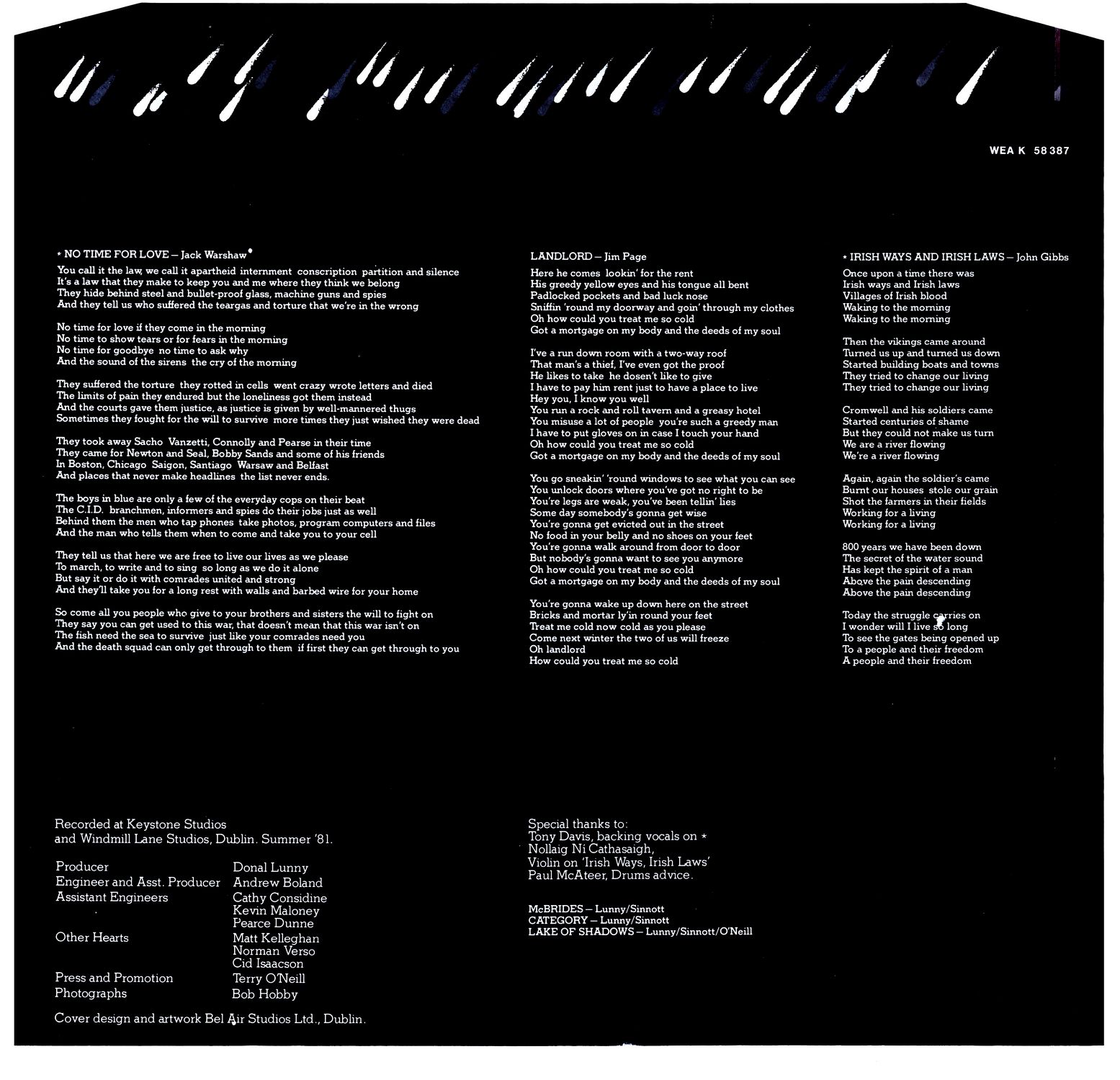 - Recorded at Keystone Studios & Windmill Lane Studios, Dublin - Summer '81