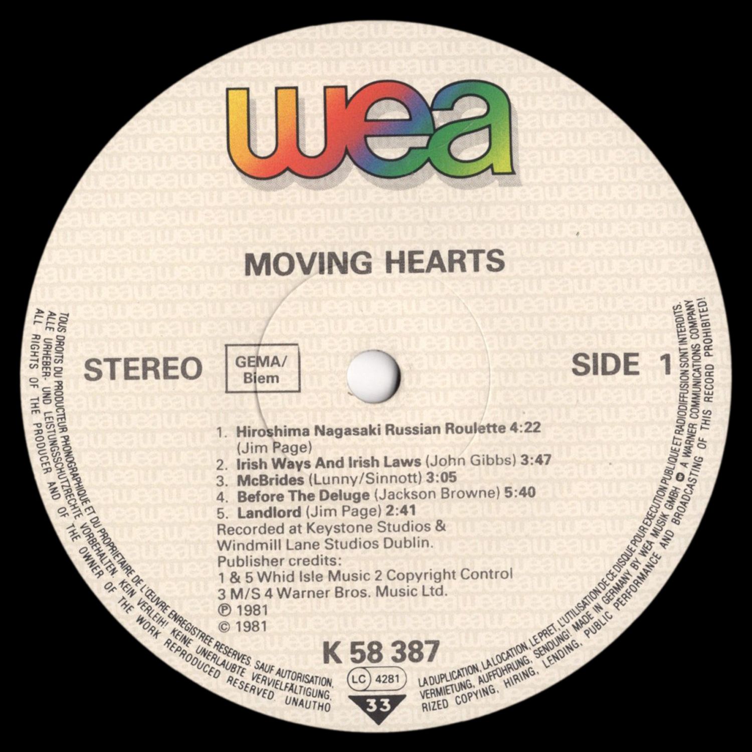 - 1981 - WEA E 58387 LP (EUR)