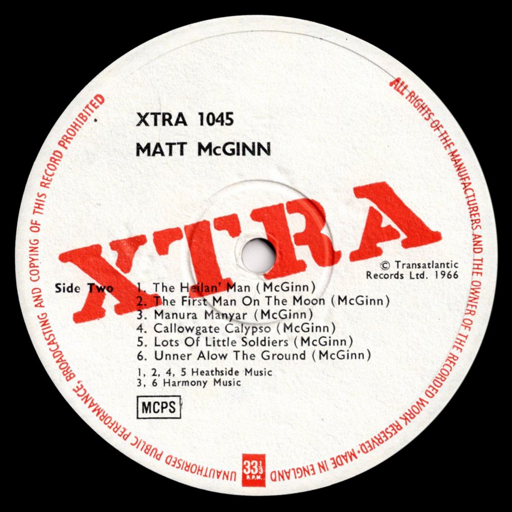 Matt McGinn's songs are mostly filled with the wry and often coarse humour of the factory floor and he first came to public notice with the song called 'The Foreman O'Rourke' a story of an unlikeable character who was drowned in a lavatory by an opportunist workman. The coarseness comes out amply on this record in 'Manura Manyar' but the sympathy for the working man comes out equally in 'Unner Alow The Ground'. McGinn also pokes good humoured fun at those who regard the tradition as a trifle too sacrosanct with his irreverent versions of well known ballads. Listen here to 'The First Man On The Moon' in which he makes excellent use of the tune of Johnny O' Breadislee. McGinn's prodigal output is largely due to his deft topical touch which may be seen in 'Ban The Beatles', but he has also a brilliant and deep feeling for political trends and a sly wit as evident in 'Old Johnny Bull' and 'Lots of Little Soldiers'.