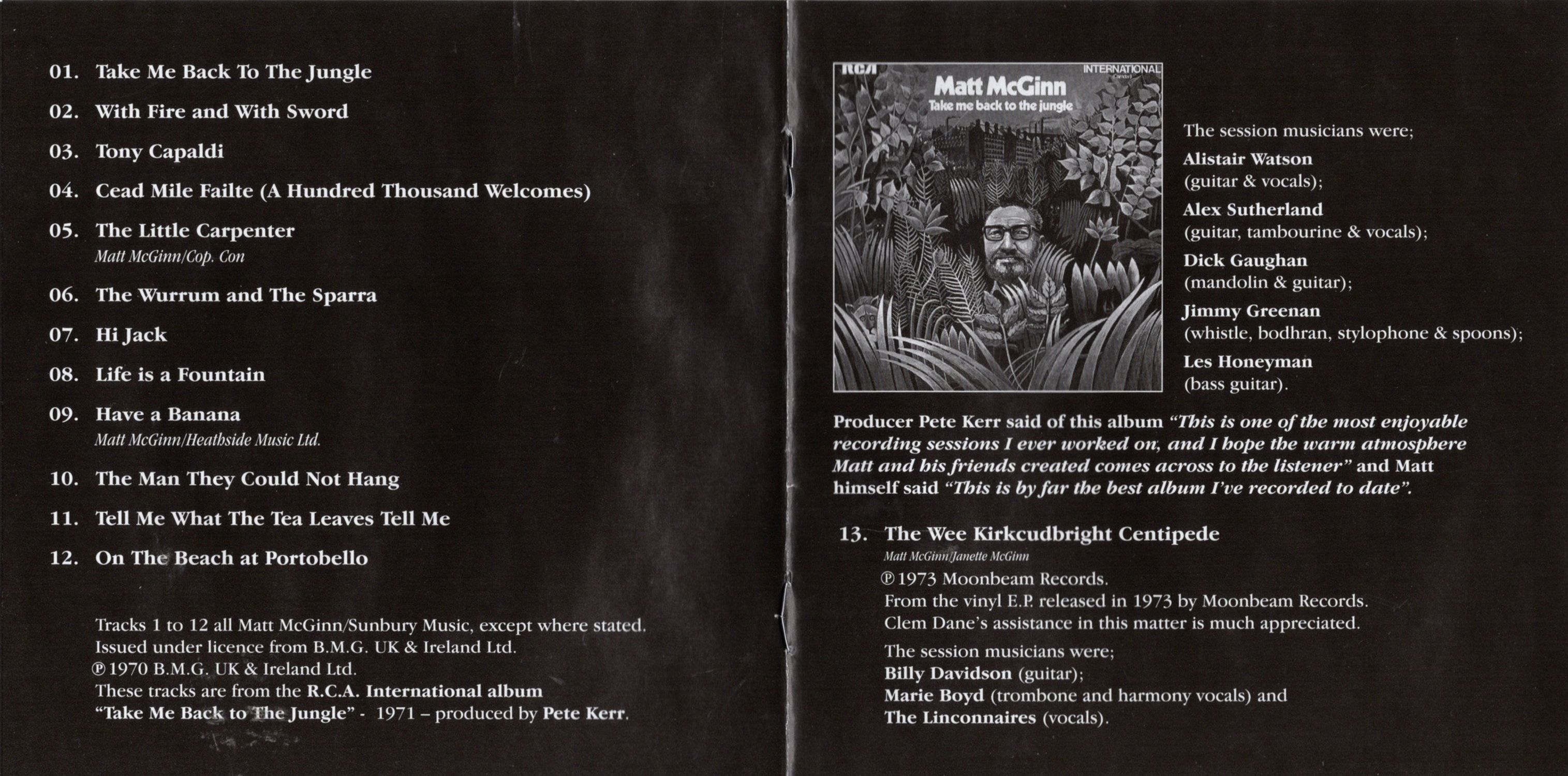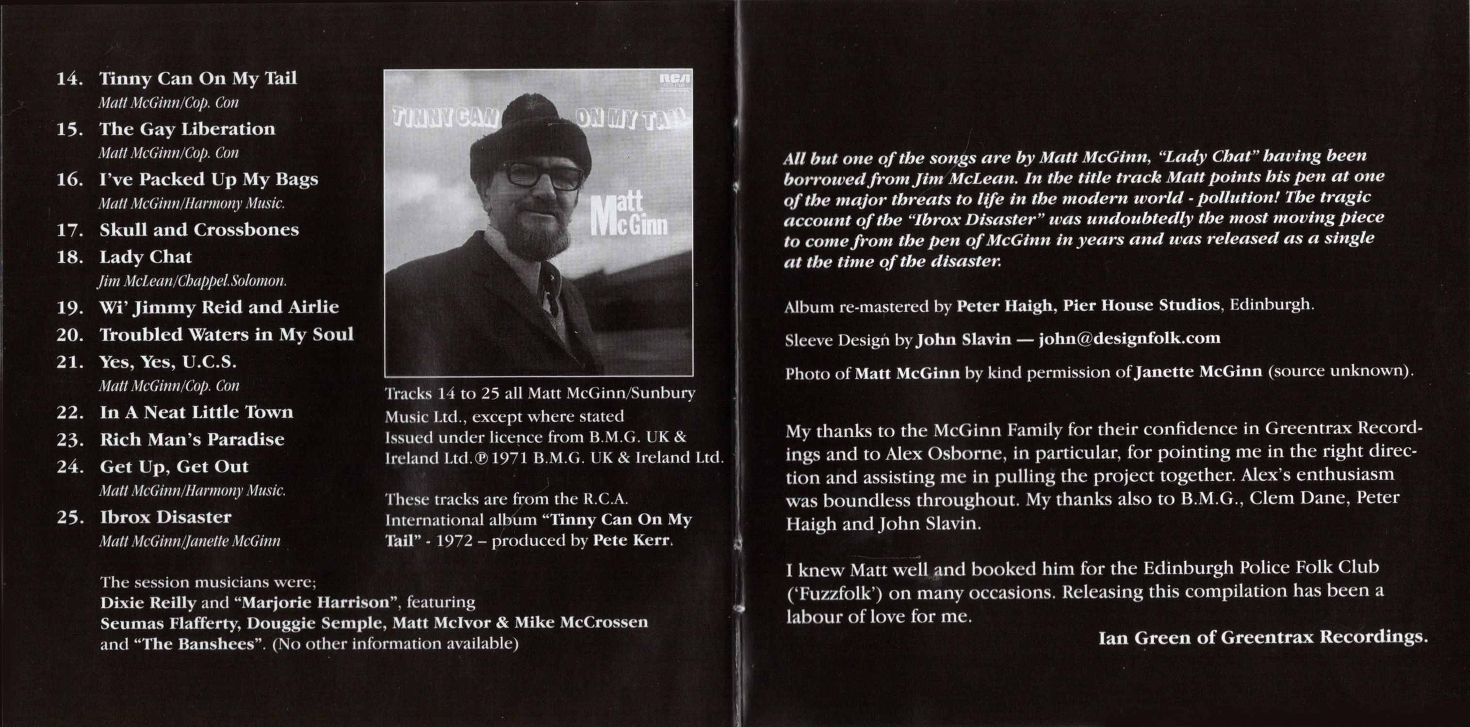 My thanks to the McGinn Family for their confidence in Greentrax Recordings and to Alex Osborne, in particular, for pointing me in the right direction and assisting me in pulling the project together. Alex's enthusiasm was boundless throughout. My thanks also to B.M.G., Clem Dane, Peter Haigh and John Slavin.