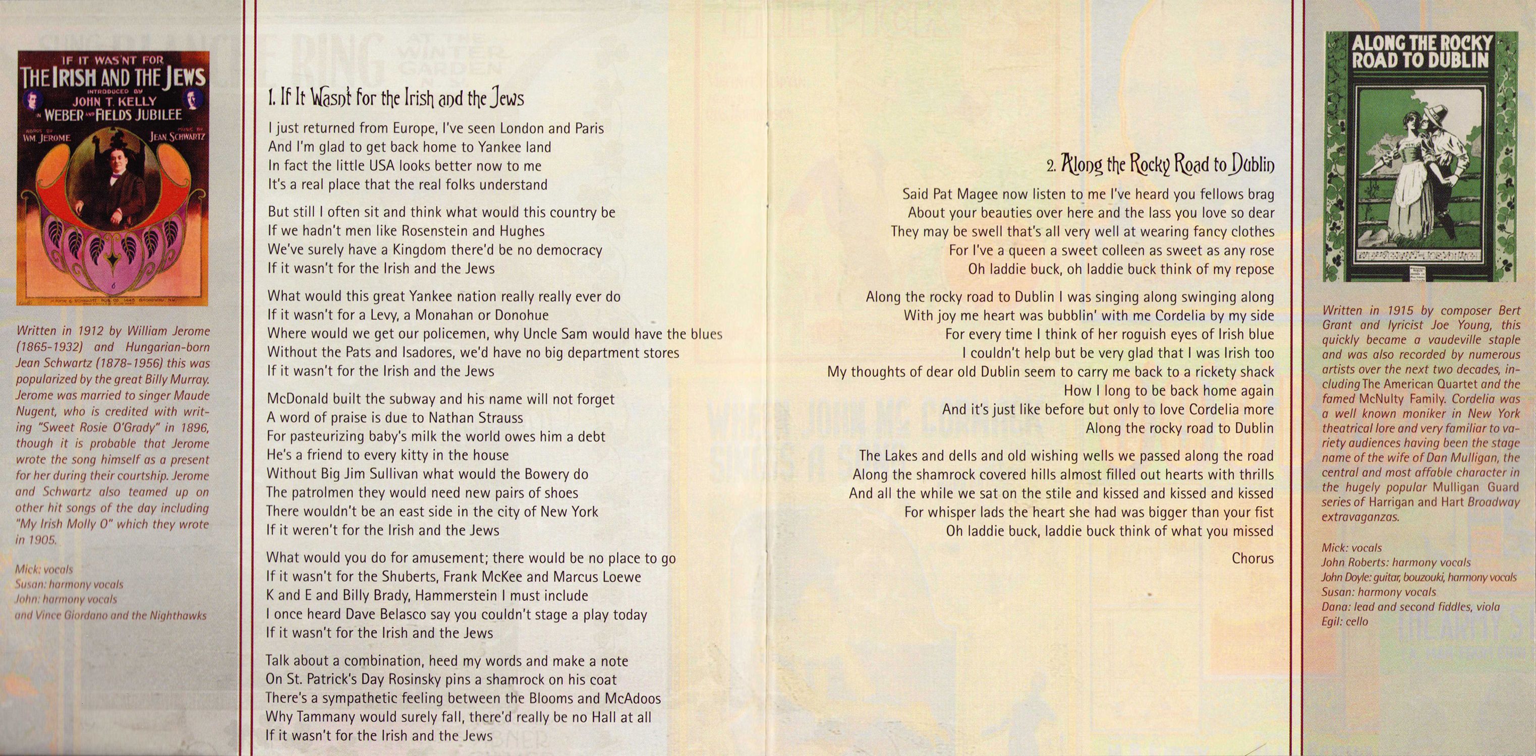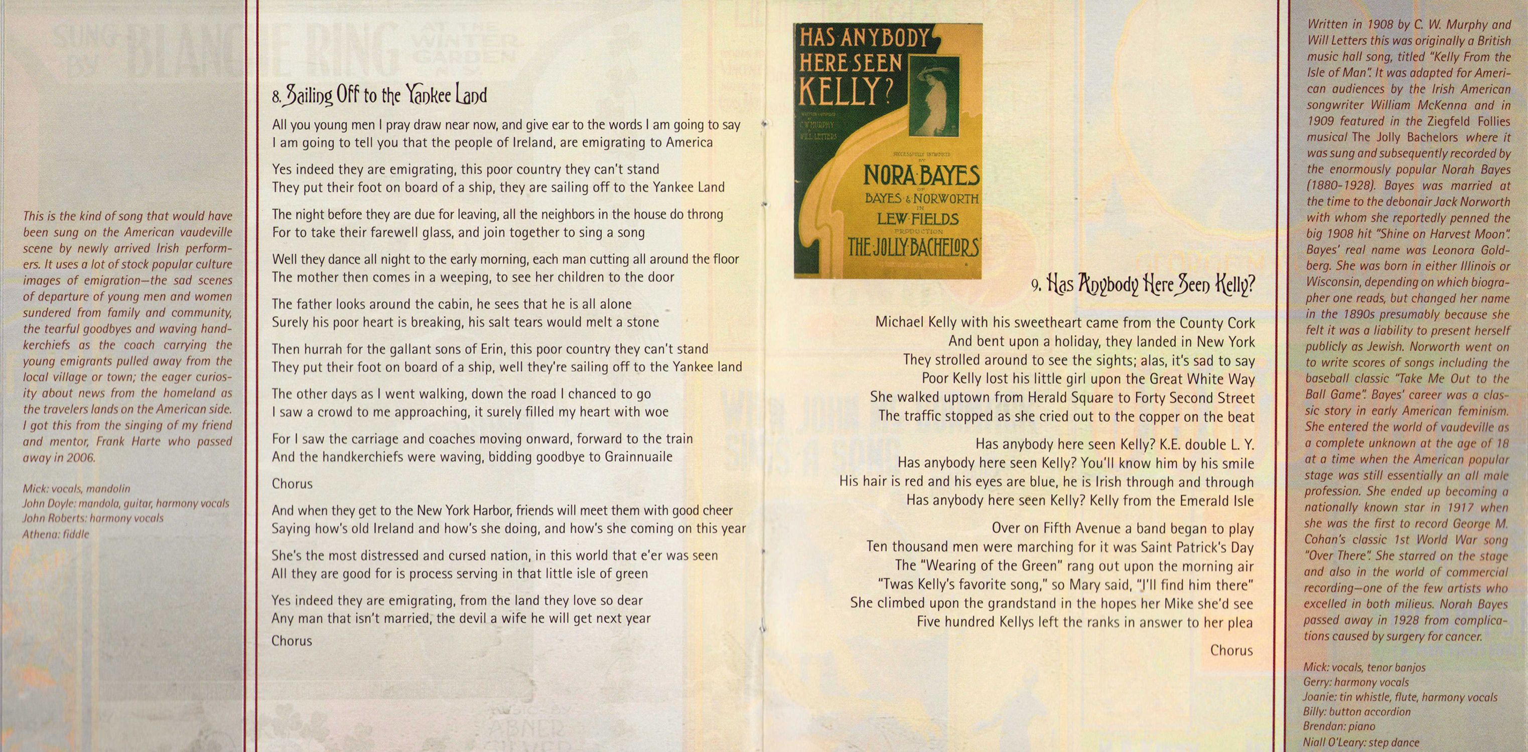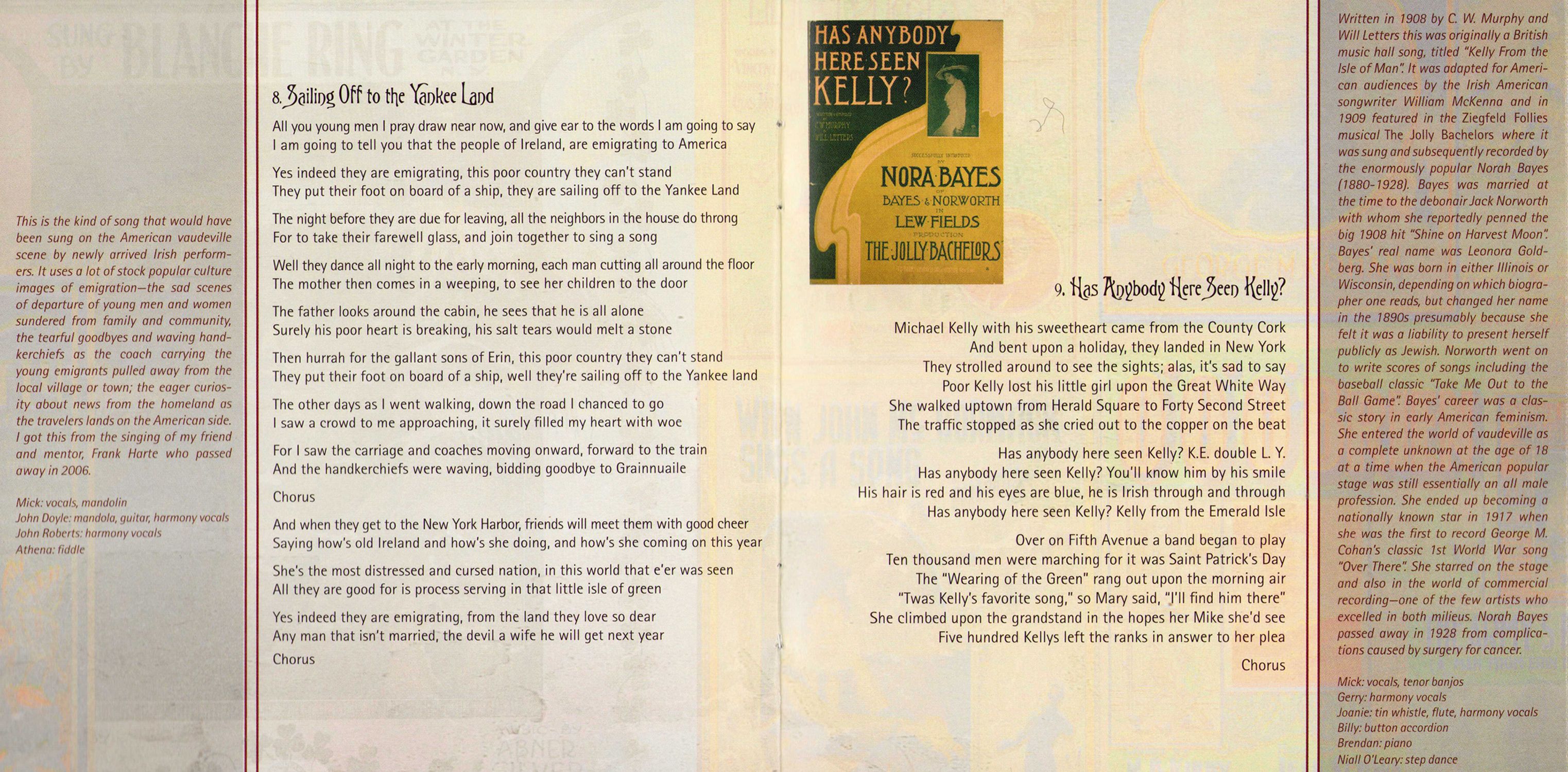 To Pat Grogan, Jesse Smith and Brendan Dolan for their friendship and assistance in tracking down esoterica on the life and times of the incomparable McNulty Family. To Jim Flannery, Peter Quinn, Tim Gracy, Chris Simmons, Don Meade, Dan Neely, Scott Spencer, Bill Williams, Ed Ward, Barry Stapleton, Dan Milner and Robert Snyder for their pioneering and inspirational research on Irish American music; in particular the vaudeville era and the early years of Tin Pan Alley To Aidan Connolly and all the great folks at the Irish Arts Center. To Loretta Brennan Glucksman, whose enthusiasm for the title track was influential in my conceiving this project. To John Doyle for his friendship, endless creativity and astonishing musicianship. To visionary Garry West of Compass Records, for believing in and supporting this project.