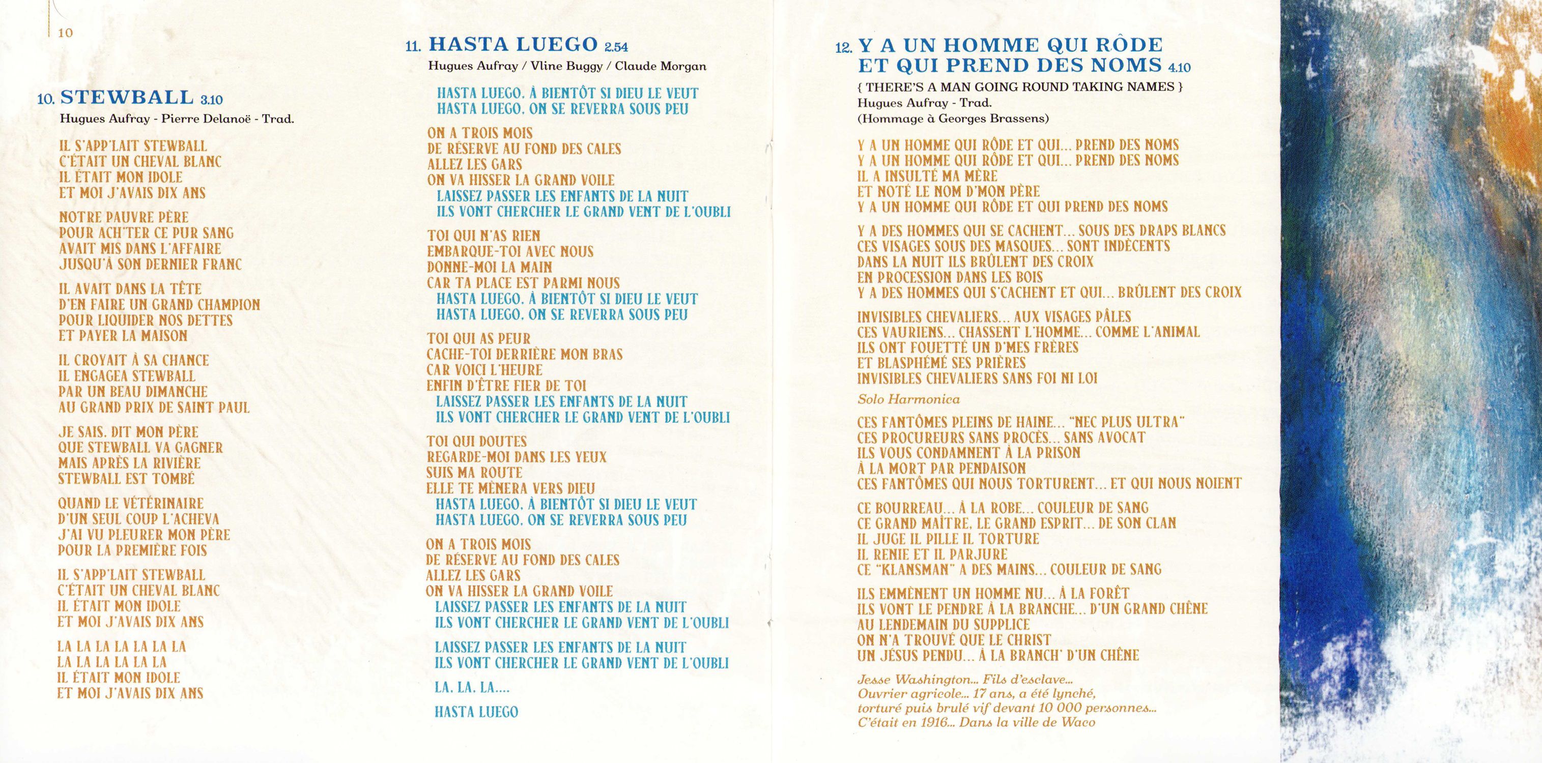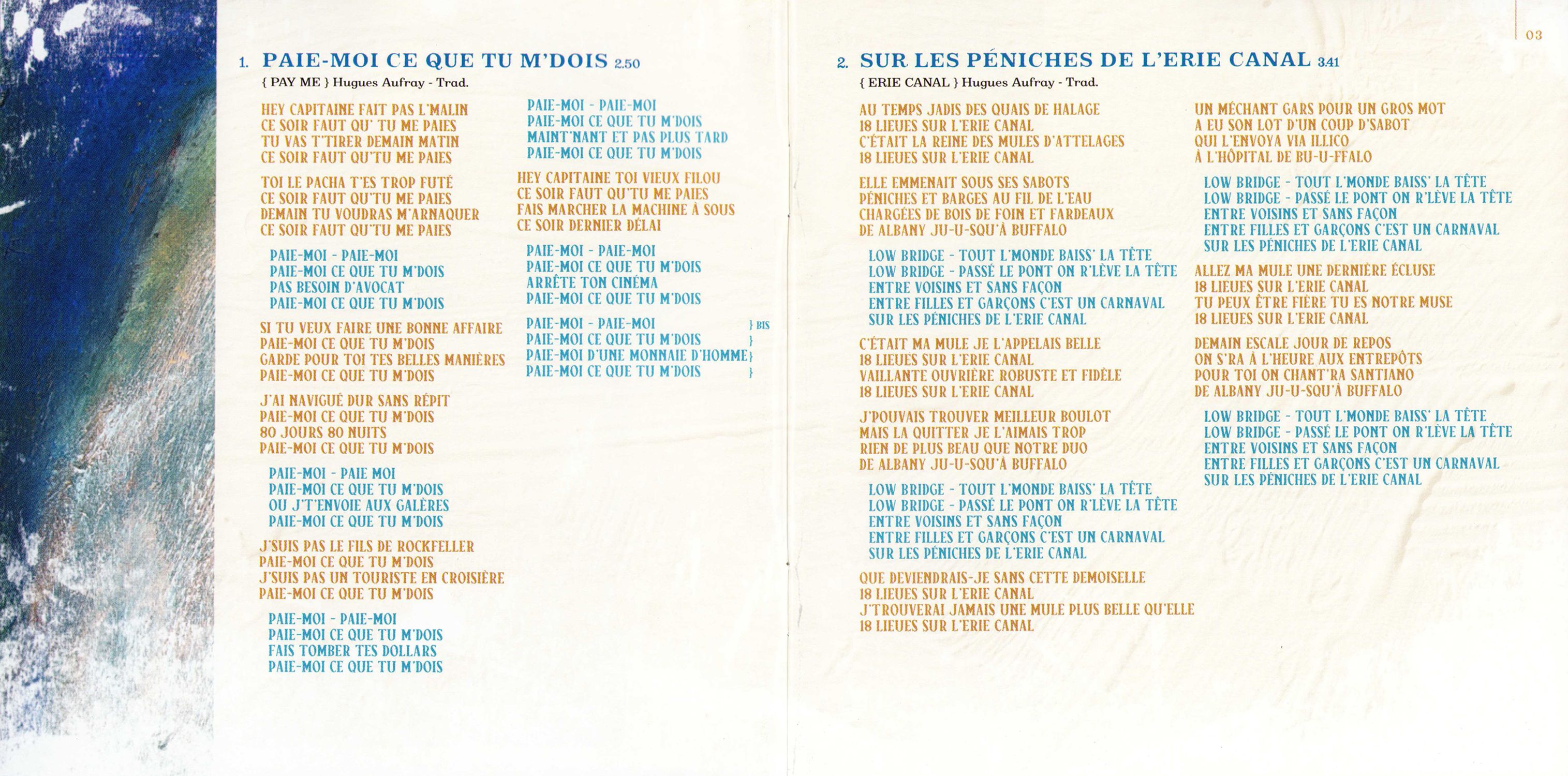 - Michael Jones, Marion Capuano, Hugues Aufray, Murielle Megevand, Max Pol Delvau & Christophe Battaglia, Anne Vally: Backing Vocals [3]