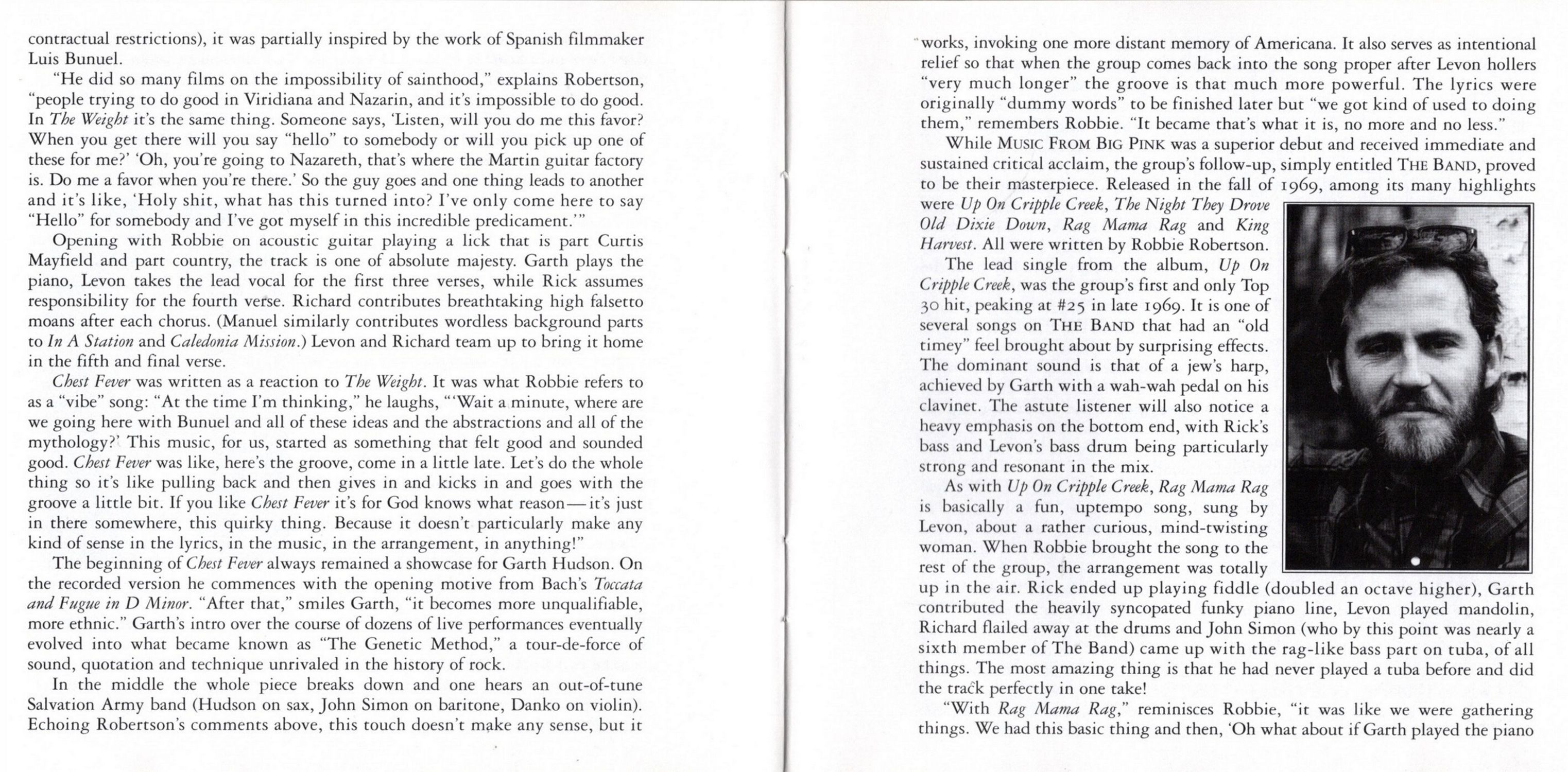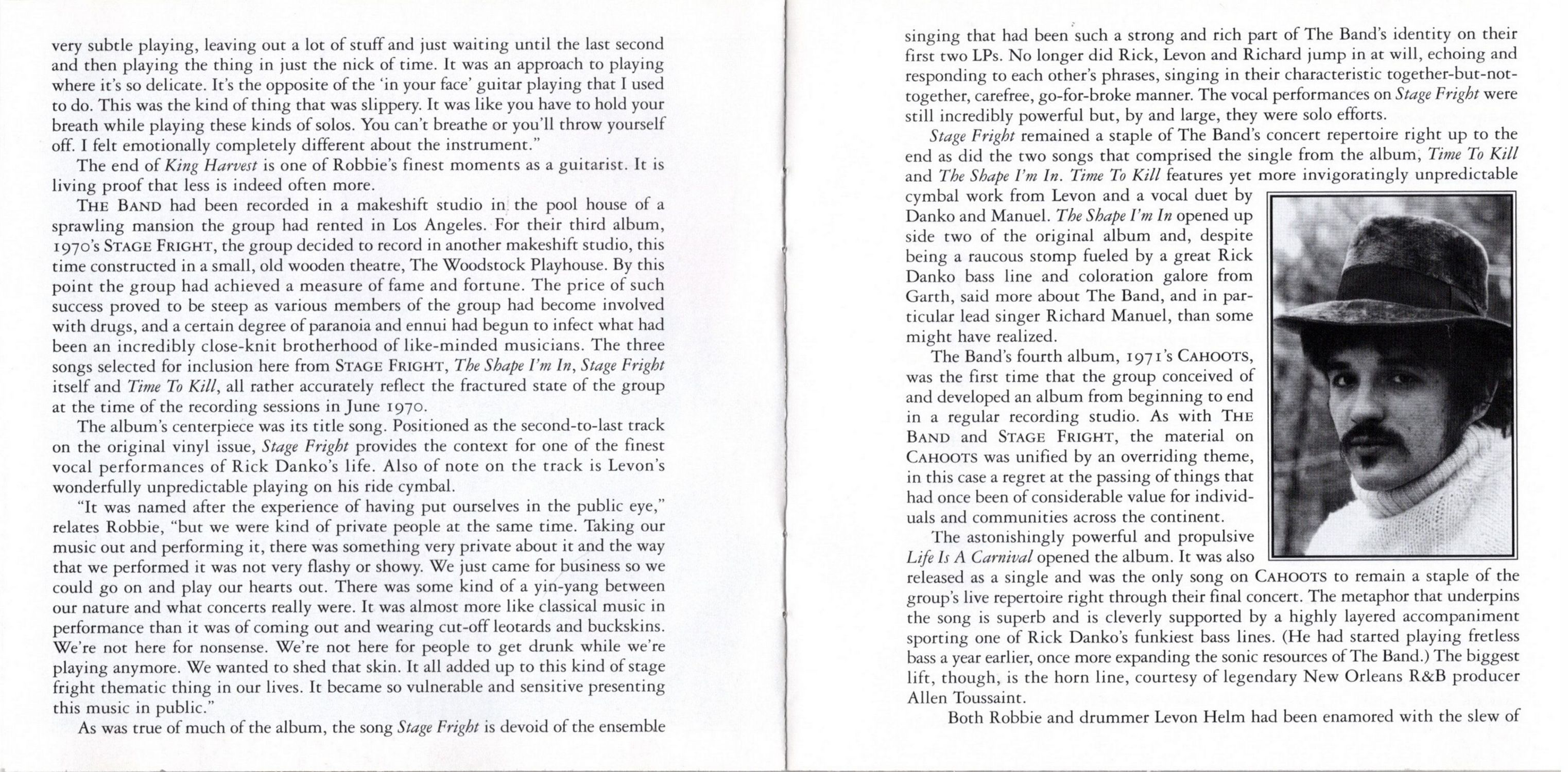 All quotes contained within these liner notes, unless specifically attributed otherwise, are from personal interviews conducted by Rob Bowman over the last twelve years with members of The Band and John Simon. Rob would like to express his thanks to all for the many hours of their time.
